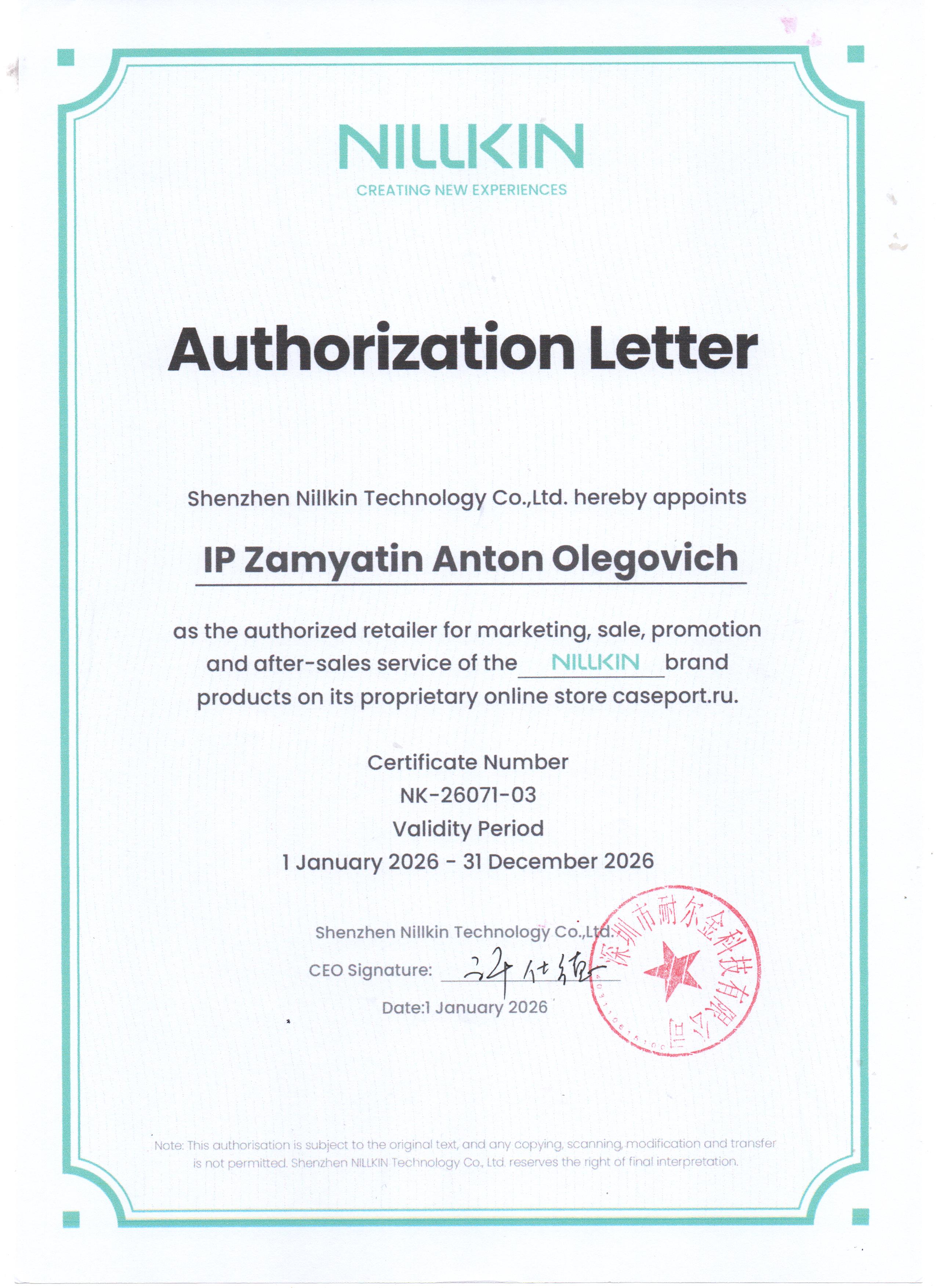 Сайт и интернет магазин Caseport.ru является официальным представителем и дистрибьютером продукции и бренда Nillkin в России.