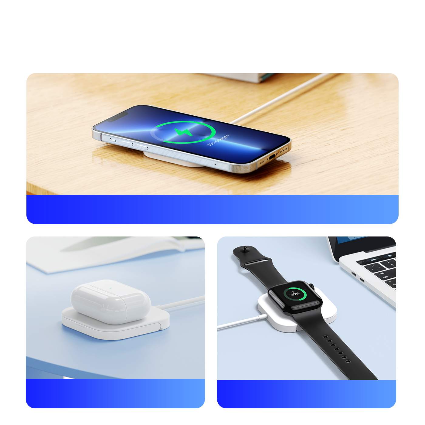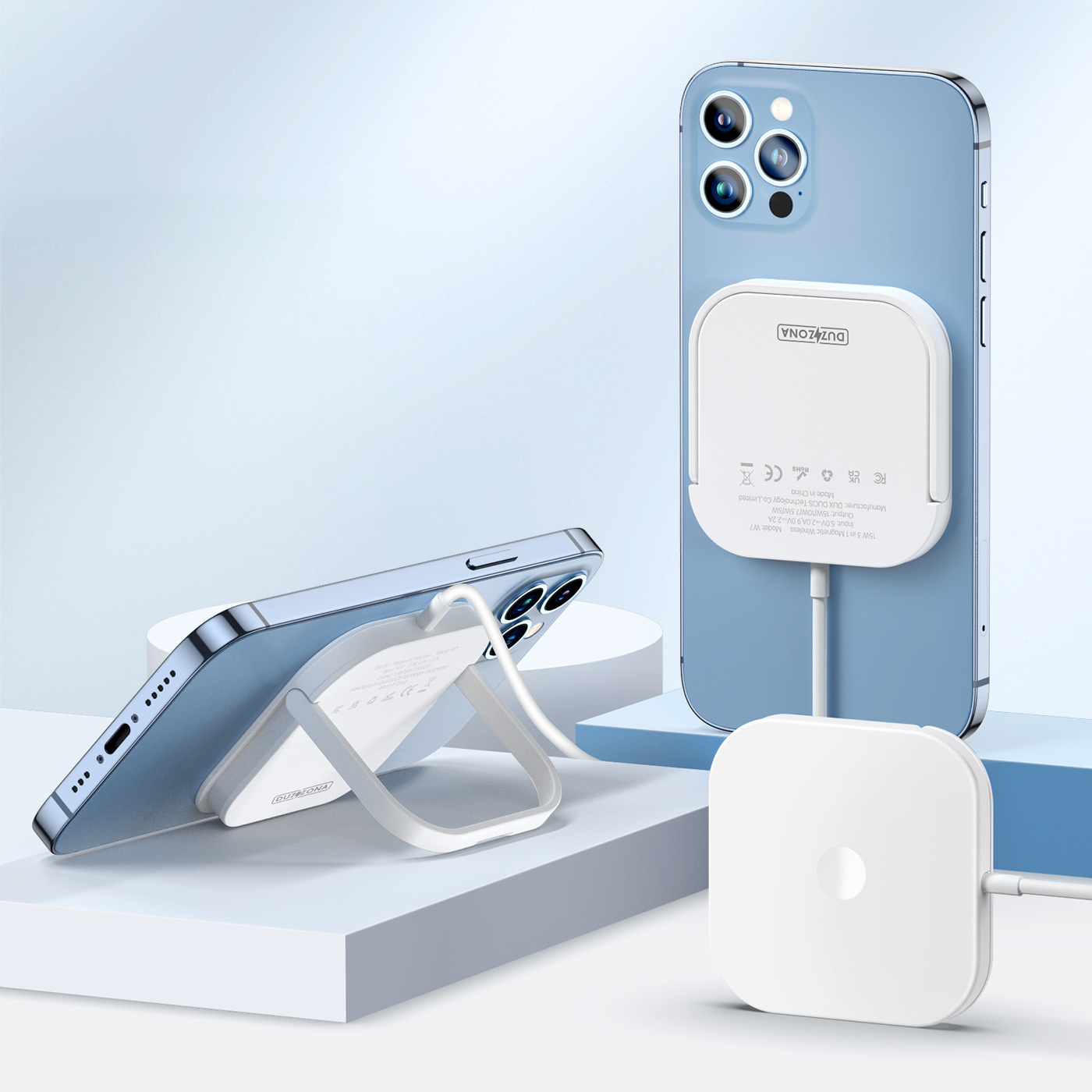 Беспроводное зарядное устройство 3 в 1 с подставкой для зарядки для устройств Apple, серия W7 Wireless Charger Stand с MagSafe 15W