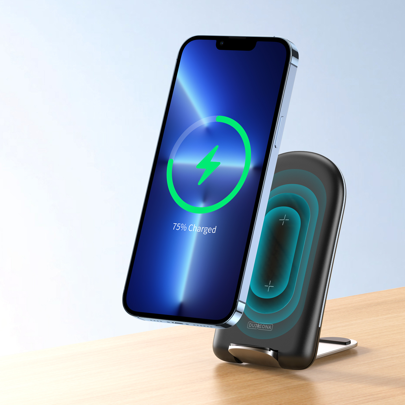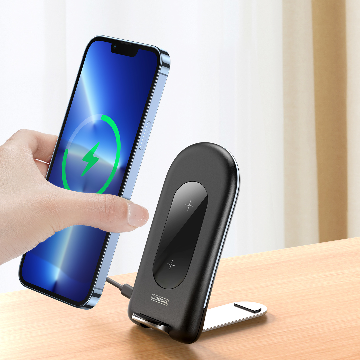 Быстрое беспроводное зарядное устройство 15W со складной подставкой, W2 Wireless Charger Stand, Duzzona. Базу можно сложить, зарядное устройство весит всего около 148 г, вы можете легко положить его в карман или рюкзак для удобства переноски.