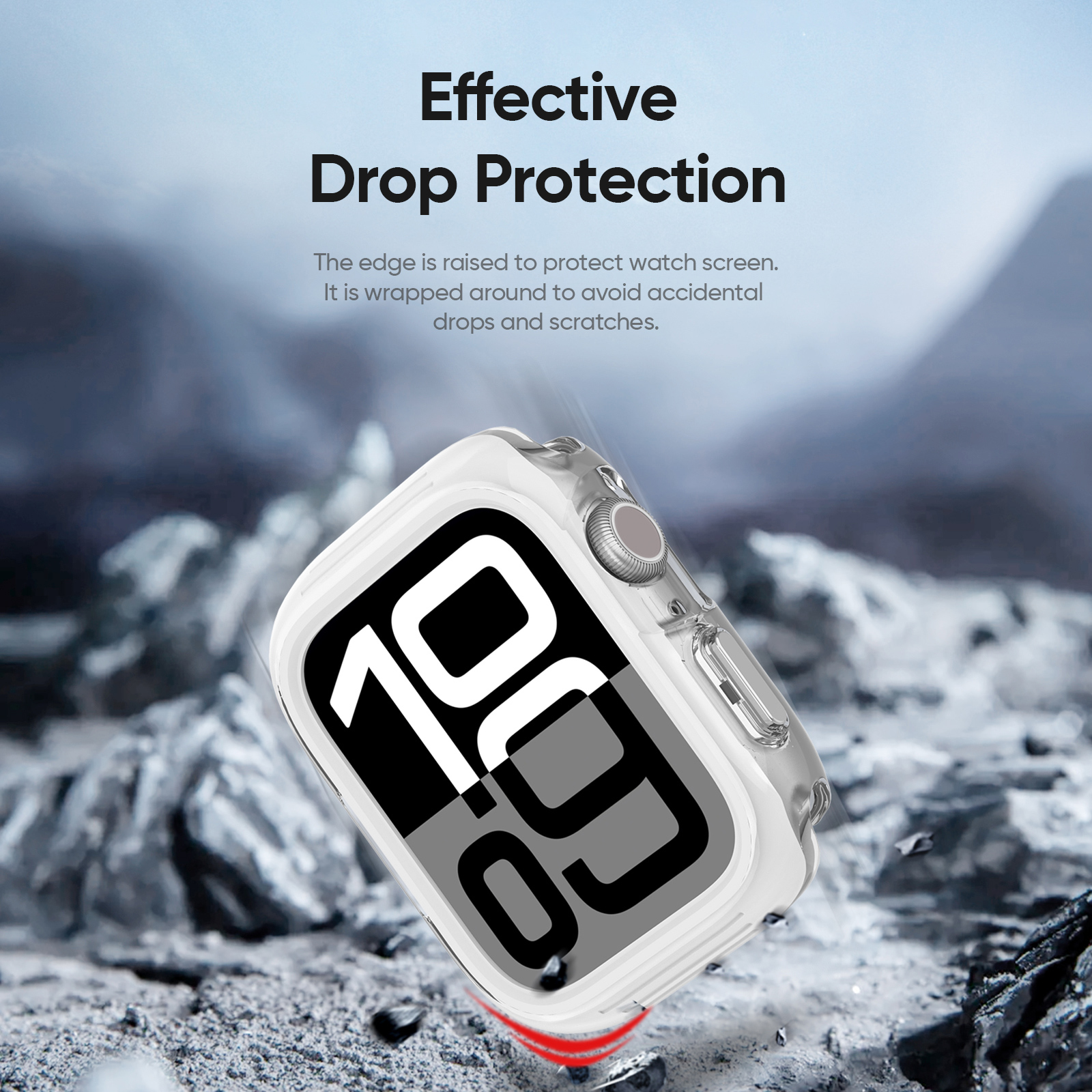 Оригинальный чехол от Dux Ducis прозрачный с белыми вставками серии Camo Series Case для смарт часов Apple Watch размером 46 мм на модели 10 серии, представляет собой цельную конструкцию, которая обеспечивает полную защиту ваших часов от падений. Боковые рамки изготовлены из экологически чистого ПК и мягкого ТПУ, что предохраняет ваши часы от царапин и износа при использовании.