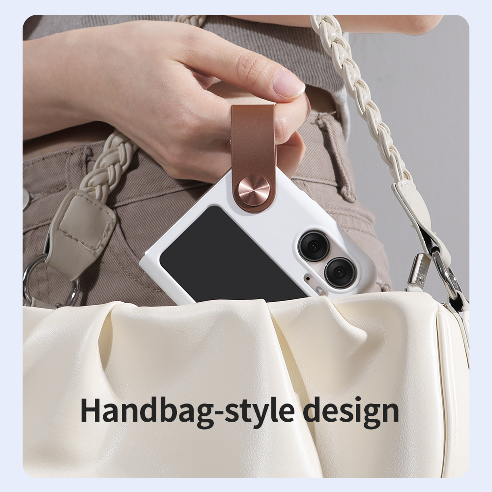 Противоскользящий чехол белого цвета (Morning White) из шелковистого силикона от Nillkin серии Flex Flip для телефона OPPO Find N2 Flip.