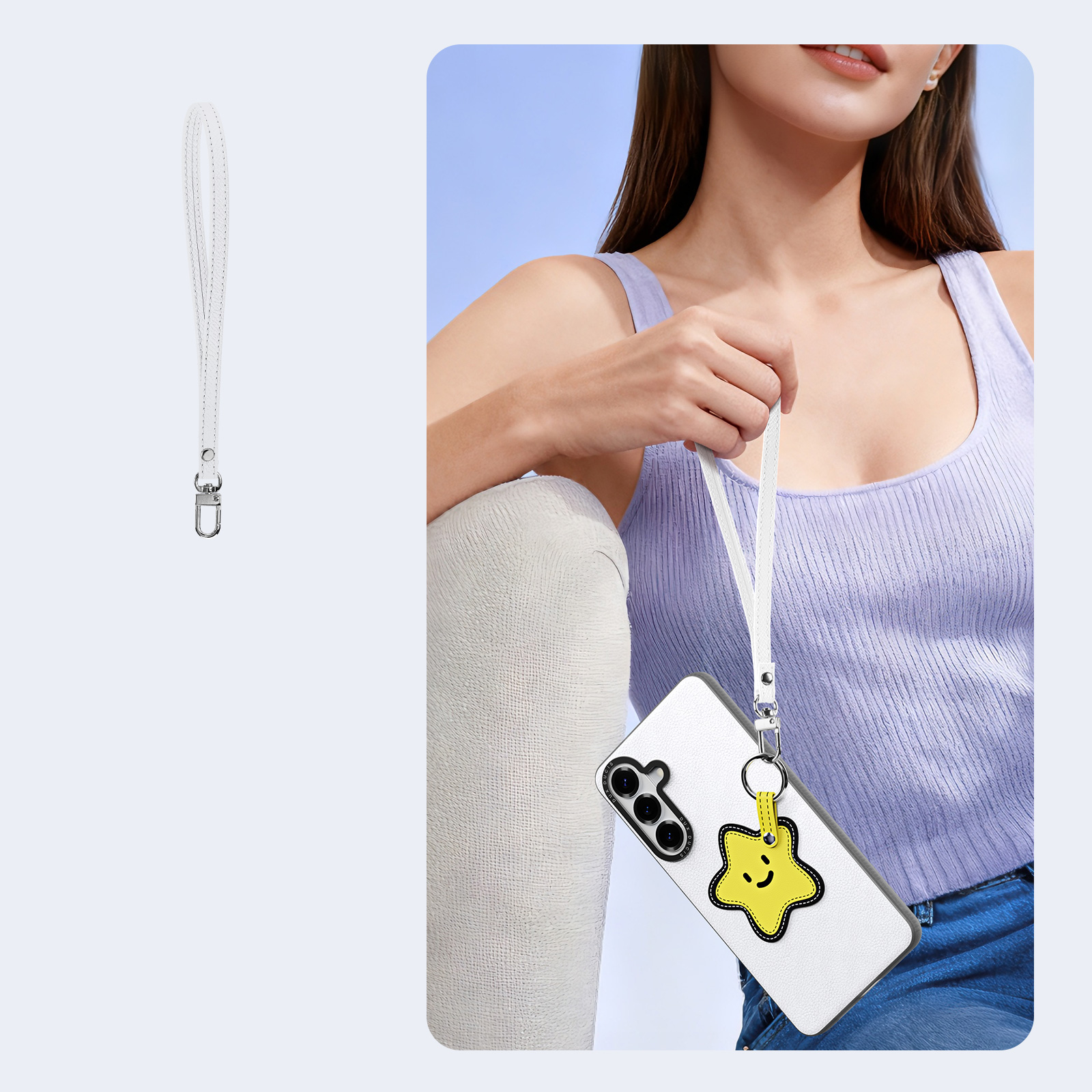 Белый чехол (Snow White) для смартфона Samsung Galaxy S26+, серия Luvy Series Case от бренда Dux Ducis - изящный аксессуар чистого снежного оттенка, идеально подходящий для тех, кто ценит минимализм и классическую элегантность. Чехол изготовлен из мягкого матового материала, приятного на ощупь, надежно защищающего устройство от царапин и повреждений. Стильный декор в виде яркого желтого смайлика-звездочки привносит нотку позитива и игривости в повседневное использование гаджета. Практичный съемный ремешок позволяет легко переносить телефон на запястье или закрепить на сумке. Эргономичные вырезы обеспечивают удобный доступ ко всем функциональным элементам смартфона, сохраняя комфорт и безопасность при эксплуатации. Данный чехол станет отличным выбором для любителей лаконичного стиля и позитивных акцентов.