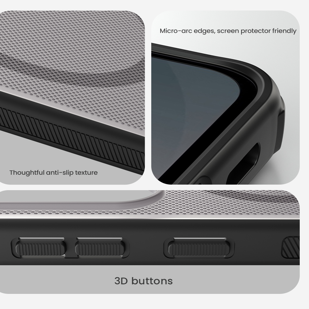 Поверхность чехла имеет характерный рельефный дизайн, обладает высокой износостойкостью, а также противоскользящими и пыленепроницаемыми свойствами. Защита от отпечатков пальцев и простота очистки.