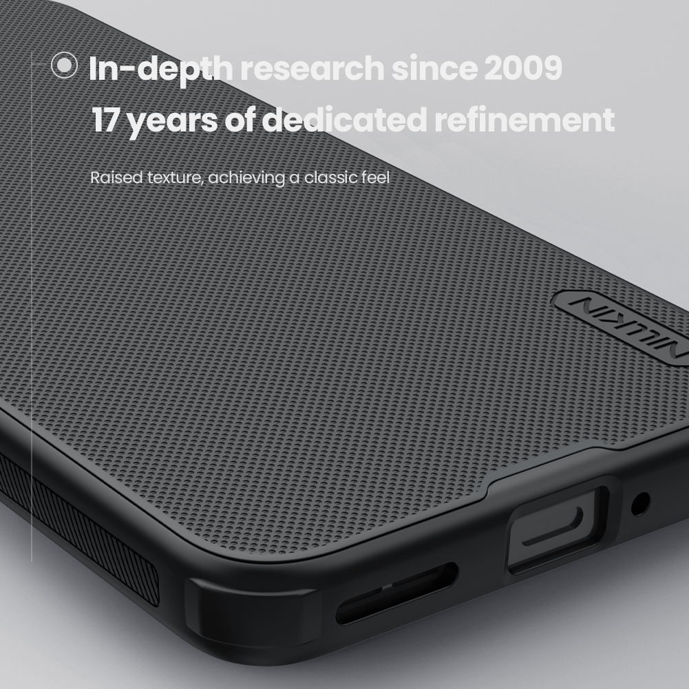 Встроенный магнит, беспроводная магнитная зарядка не поддерживается! Защитный чехол черного цвета от Nillkin серии Super Frosted Shield Pro Magnetic для смартфона OnePlus 15R и Ace 6, 6T с усиленными боковыми рамками по четырем углам и встроенным магнитом, изготавливается из экологичных материалов PC и TPU путем высокоточного литья под давление с высокой температурой. Чехол используется с держателем с поддержкой MagSafe.