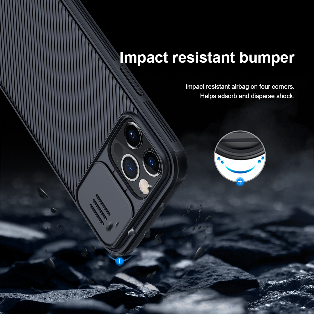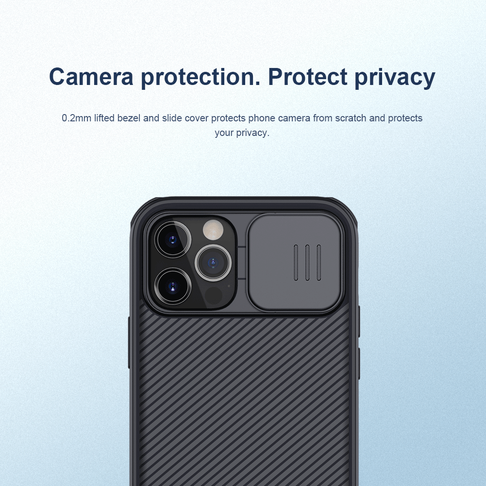Противоударный чехол с защитной крышкой задней камеры и беспроводной зарядкой от Nillkin серии CamShield Pro Magnetic Case для iPhone 12 Pro Max.