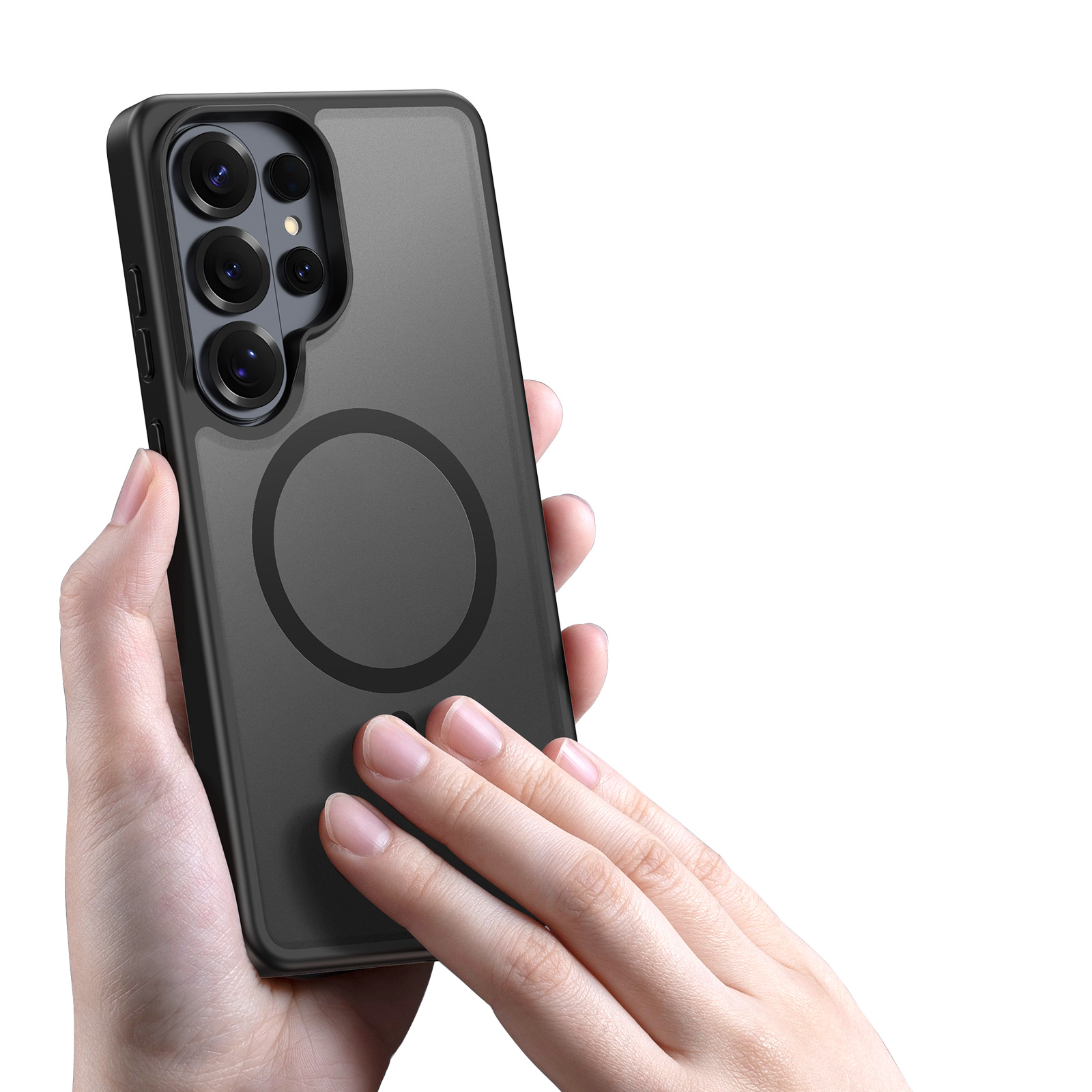 Чехол черного цвета с поддержкой MagSafe для смартфона Samsung Galaxy S26 Ultra из серии Yind Series от бренда Dux Ducis обеспечивает надежную защиту устройства благодаря прочному материалу корпуса. Элегантный дизайн чехла подчеркивает стильный внешний вид телефона, сохраняя его оригинальность. Круглый магнитный элемент в нижней части задней панели позволяет удобно крепить аксессуары MagSafe, обеспечивая беспроводную зарядку и использование дополнительных аксессуаров. Чехол точно повторяет контуры устройства, оставляя свободным объектив камеры для удобства съемки. Материал чехла приятен на ощупь и устойчив к царапинам, продлевая срок службы вашего гаджета.