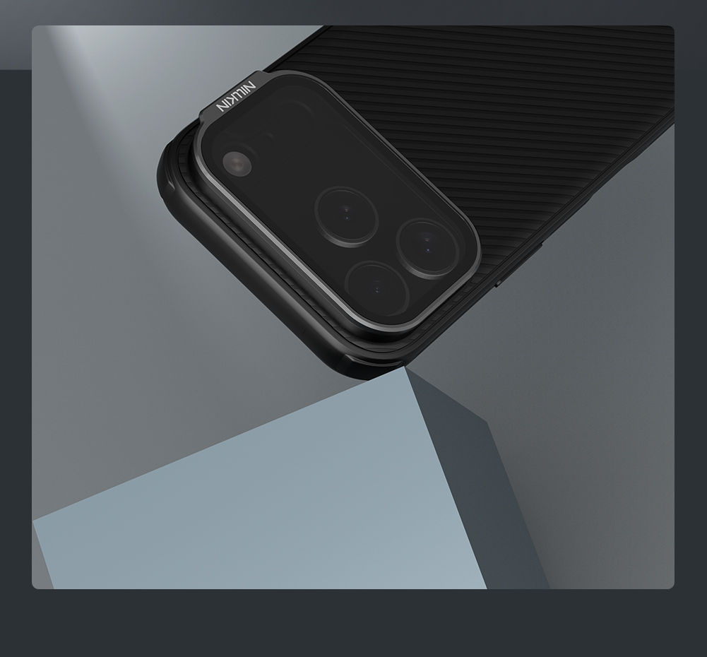 Противоударный чехол черного цвета с откидной металлической защитной крышкой для камеры и поддержкой магнитной беспроводной зарядки MagSafe от Nillkin серии CamShield Prop Magnetic Case (версия с крышкой объектива тонированной) для телефона iPhone 17 Pro создан для любителей активного отдыха.