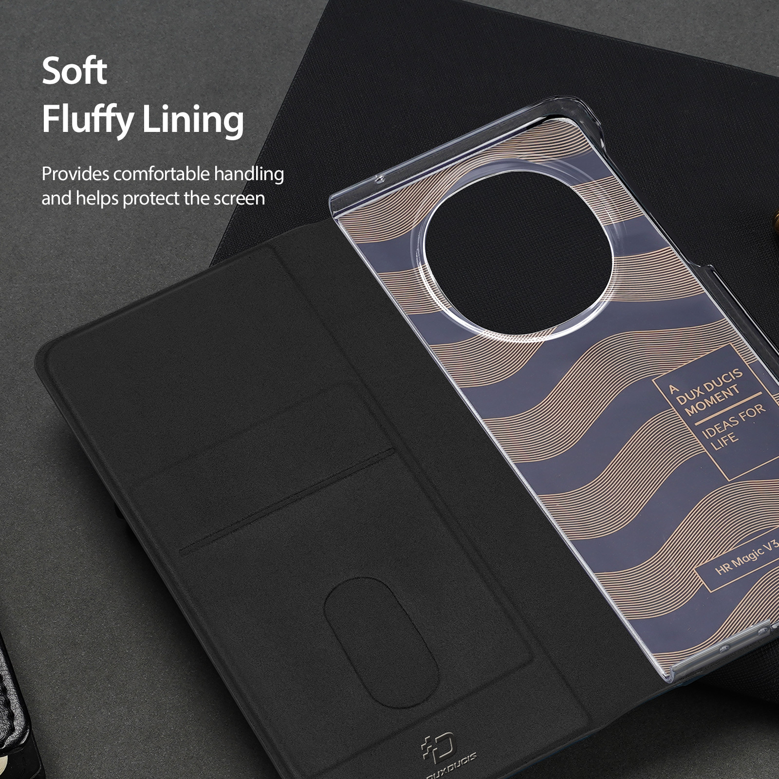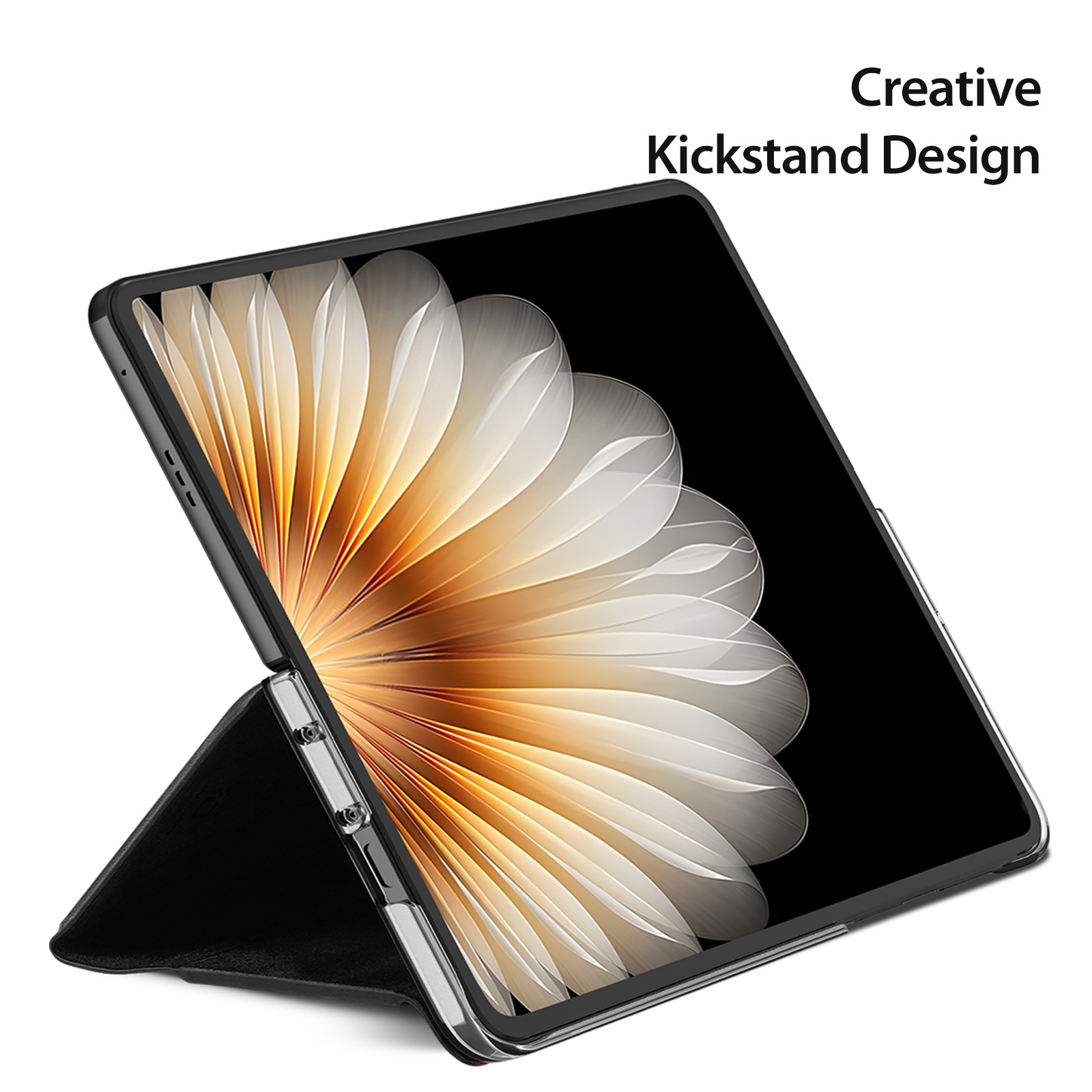 Чехол черного цвета покрытый премиальной искусственной кожи от Dux Ducis для OPPO Find N5, серия Bril Series Case. Искусственная кожа с твердой крышкой делает захват и посадку идеальными для складного телефона, такой гладкий и тонкий дизайн обеспечивает удобное использование.