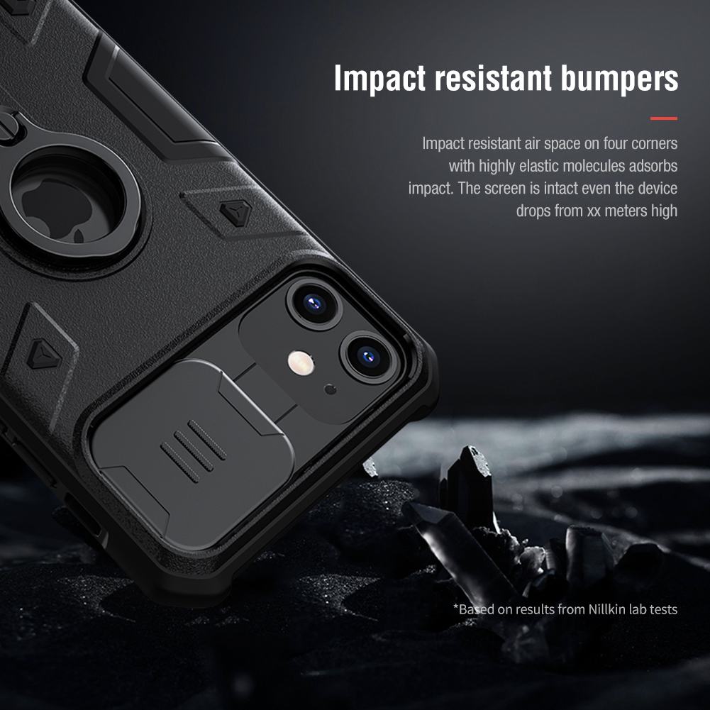 Противоударный чехол с кольцом и защитной крышкой задней камеры от Nillkin серии CamShield Armor Case для iPhone 11 создан для любителей активного отдыха.