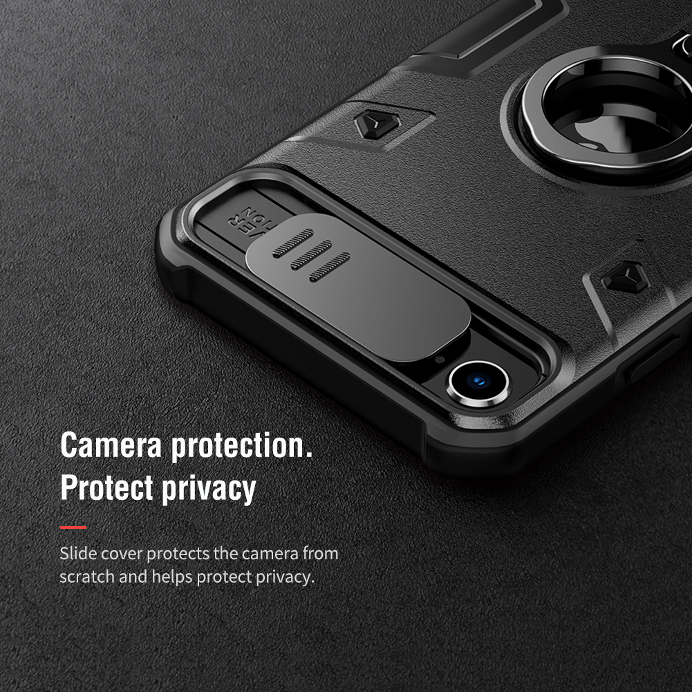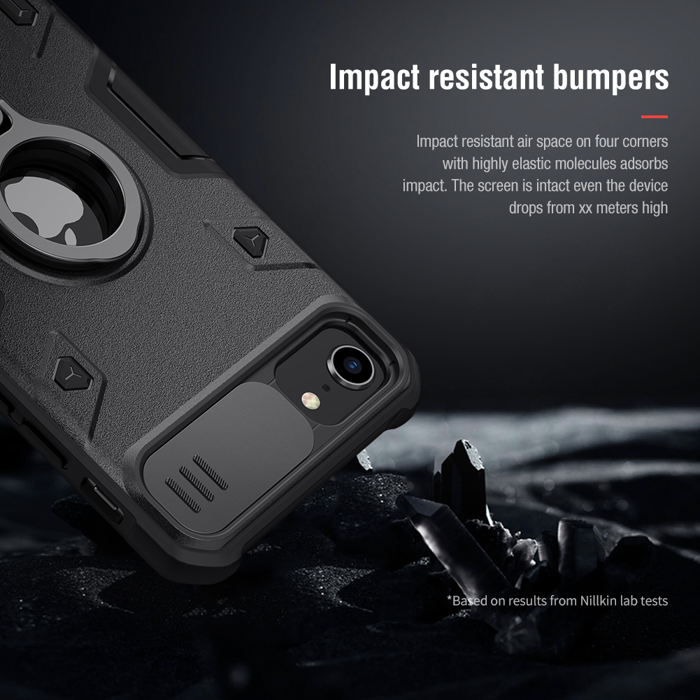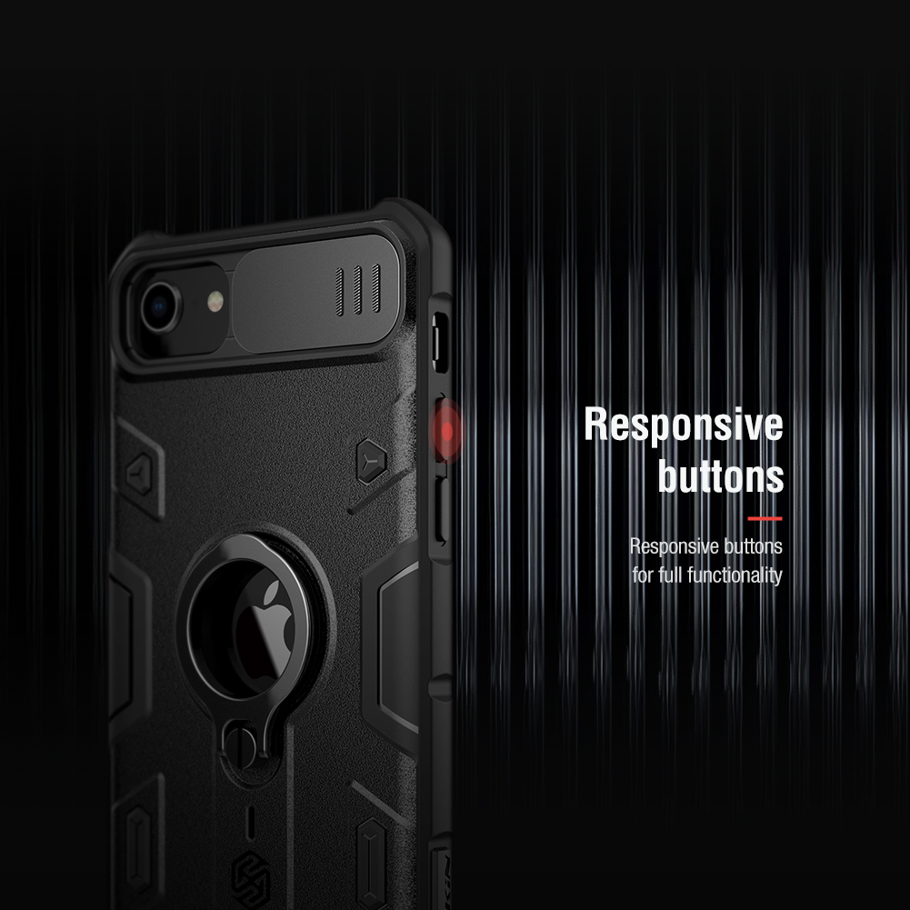 Противоударный чехол с кольцом и защитной крышкой задней камеры от Nillkin серии CamShield Armor Case для iPhone SE (2020), iPhone 7 и 8 создан для любителей активного отдыха.