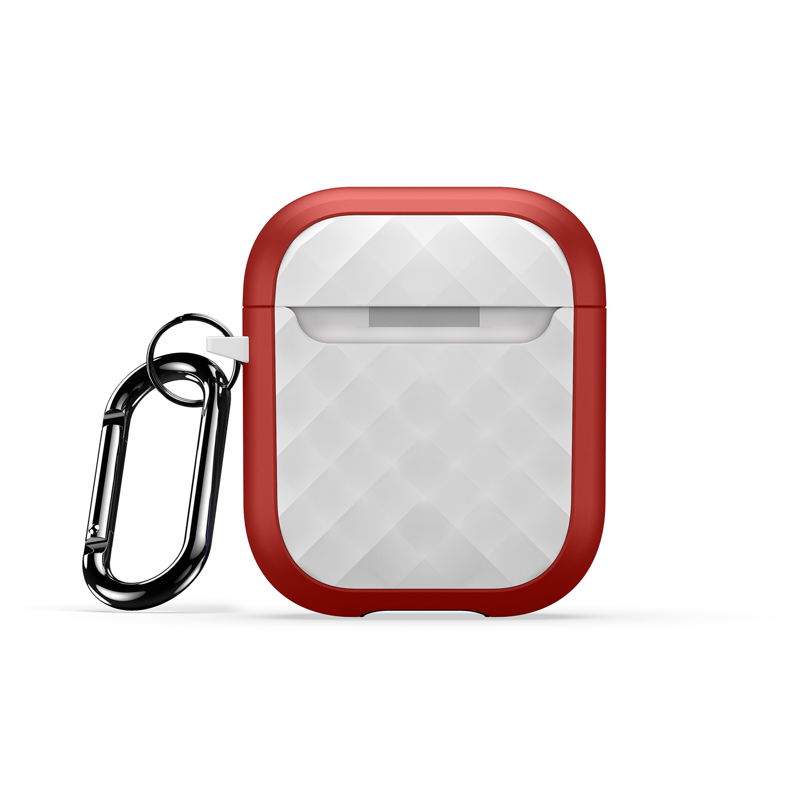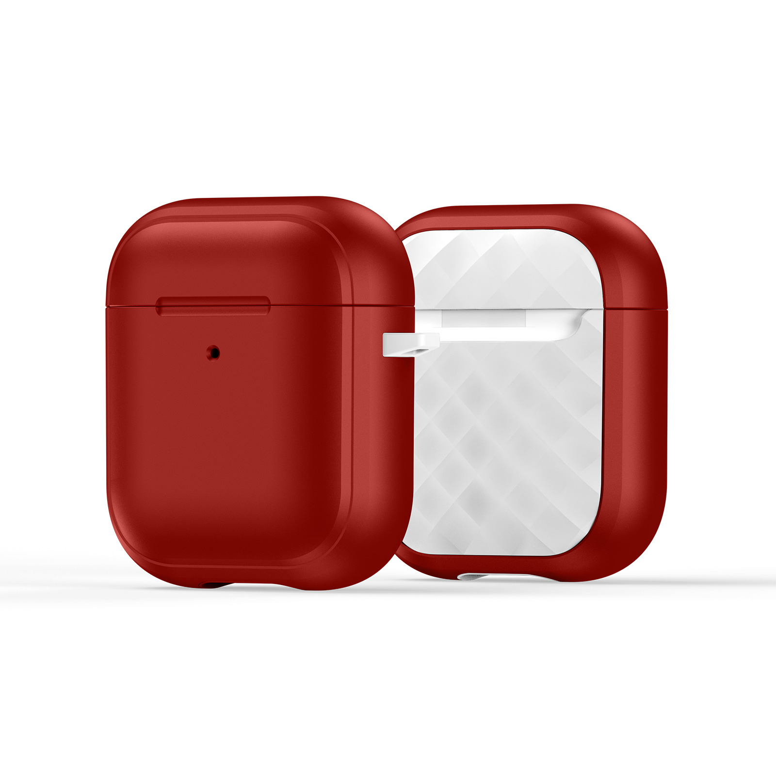Чехол красный с вставками белого цвета (RedWhite) для наушников AirPods 1 и 2 поколения, серии PECC Series Case от Dux Ducis выполнен из высококачественного плотного TPU + PC, обеспечивает плотное прилегание и надёжную защиту. Виден передний светодиод зарядного кейса.