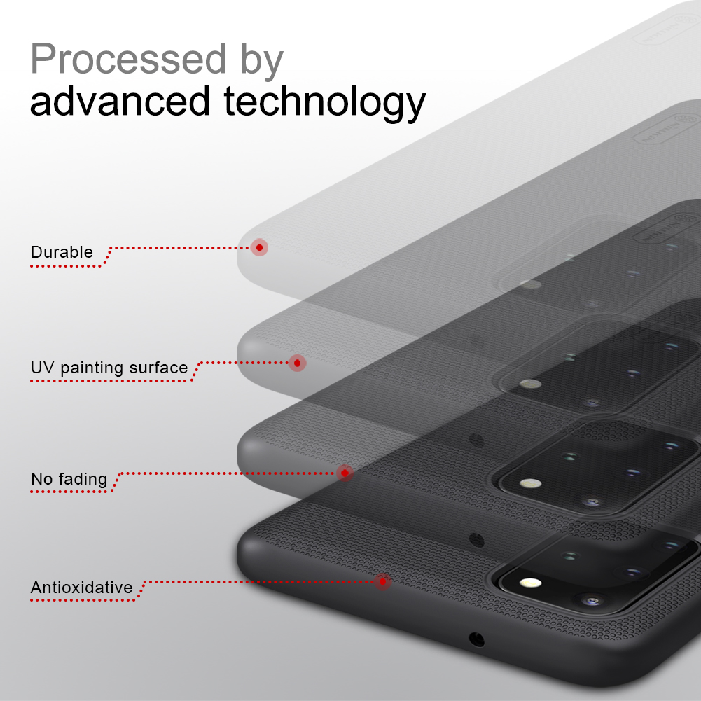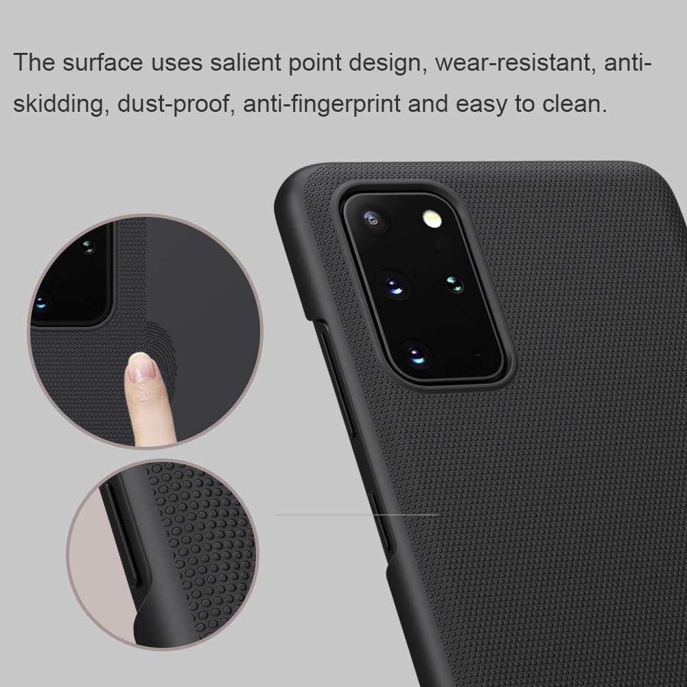 Чехол черного цвета от Nillkin серии Super Frosted Shield для смартфона Samsung Galaxy S20+ Plus изготавливается из экологичных материалов путем высокоточного литья под давление с высокой температурой.
