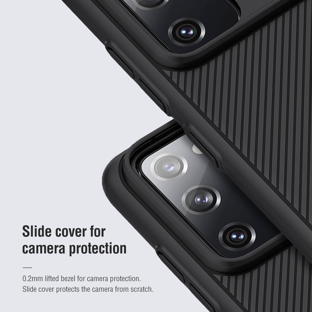 Противоударный чехол с защитной крышкой задней камеры серии CamShield Case от Nillkin для Samsung Galaxy S20 FE Fan Edition создан для любителей активного отдыха.