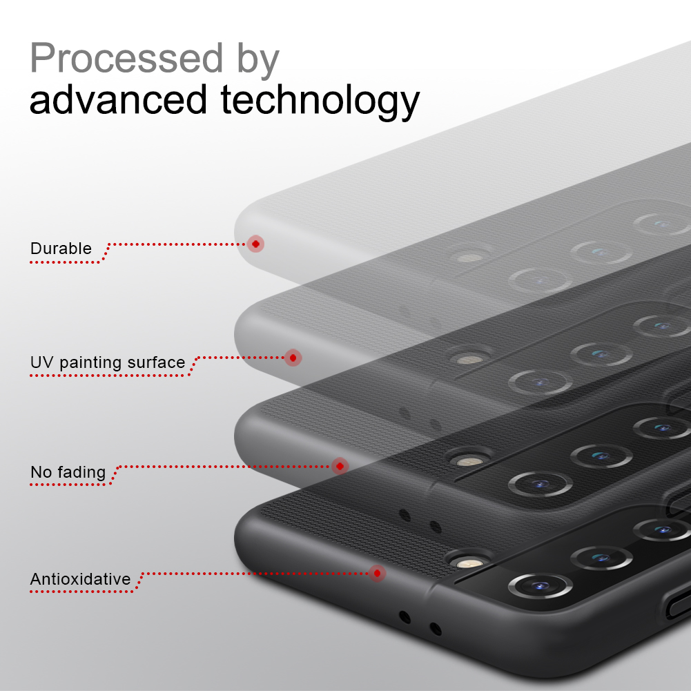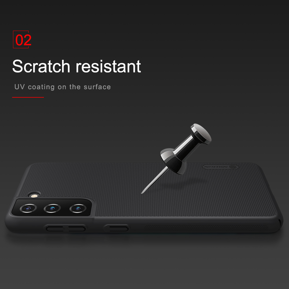 Тонкий чехол черного цвета от Nillkin серии Super Frosted Shield для смартфона Samsung Galaxy S21 изготавливается из экологичных материалов путем высокоточного литья под давление с высокой температурой.