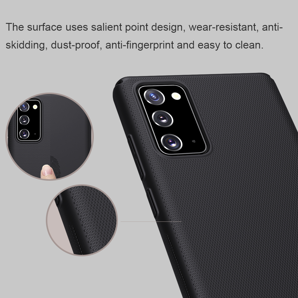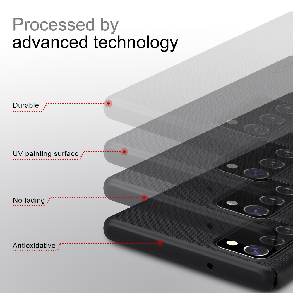 Чехол черного цвета от Nillkin серии Super Frosted Shield для смартфона Samsung Galaxy Note 20 изготавливается из экологичных материалов путем высокоточного литья под давление с высокой температурой.