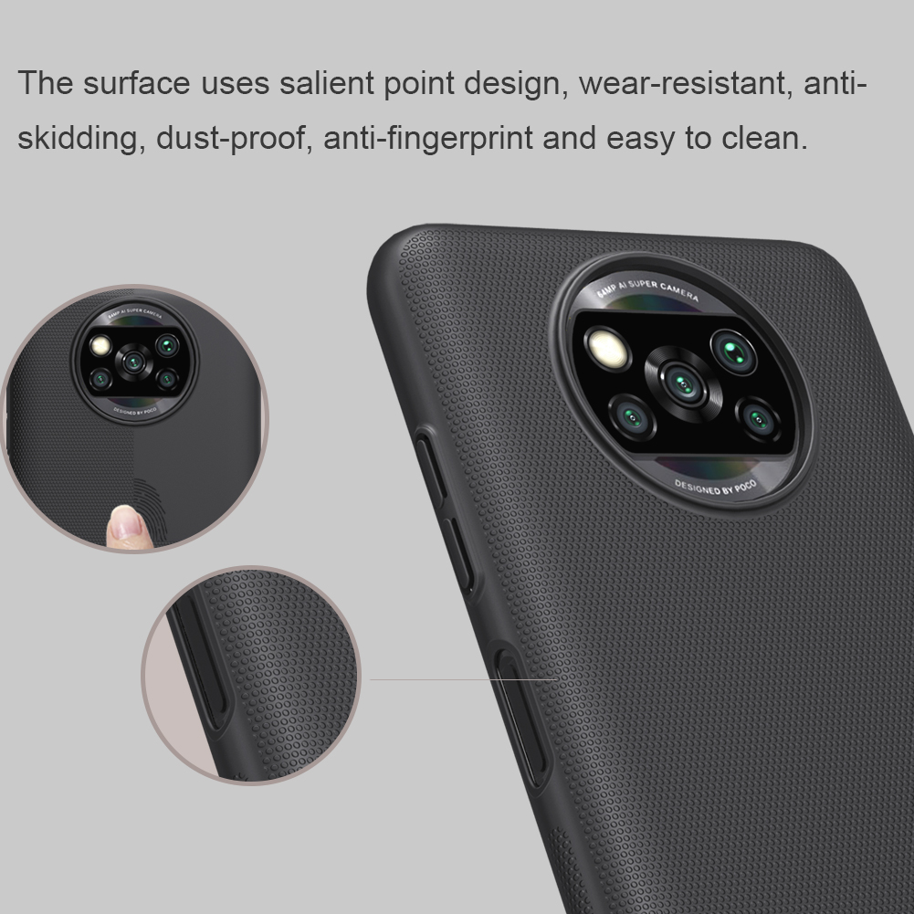 Тонкий чехол черного цвета от Nillkin серии Super Frosted Shield для смартфона Xiaomi Poco X3 NFC и Poco X3 Pro изготавливается из экологичных материалов путем высокоточного литья под давление с высокой температурой.