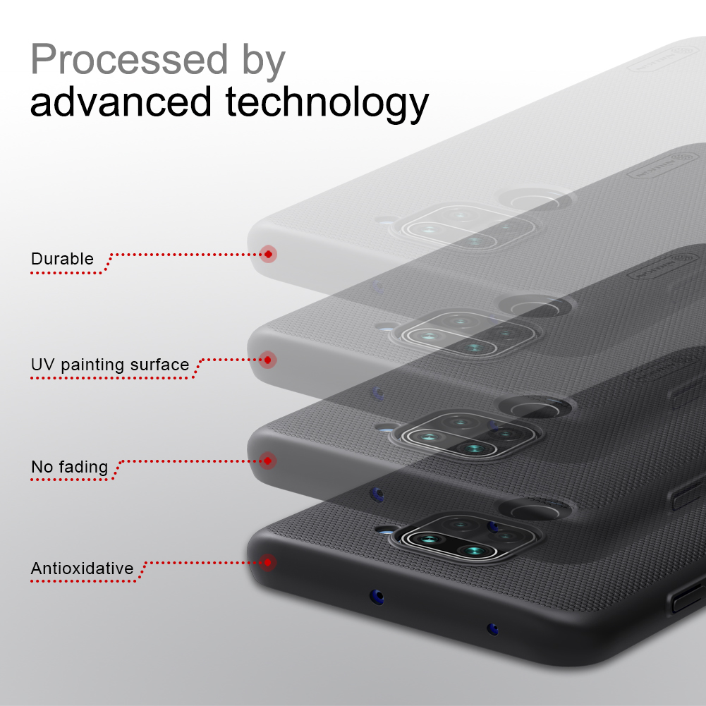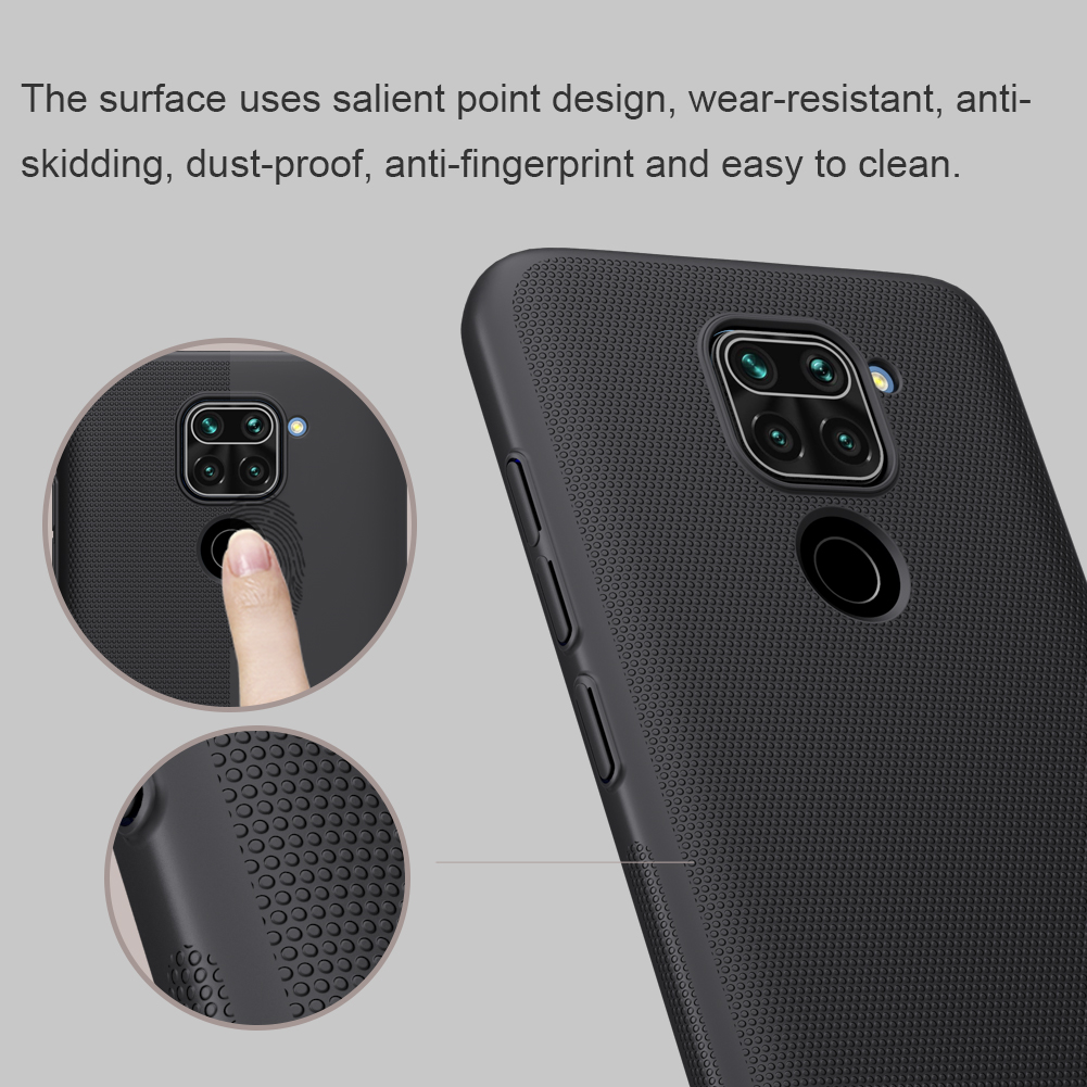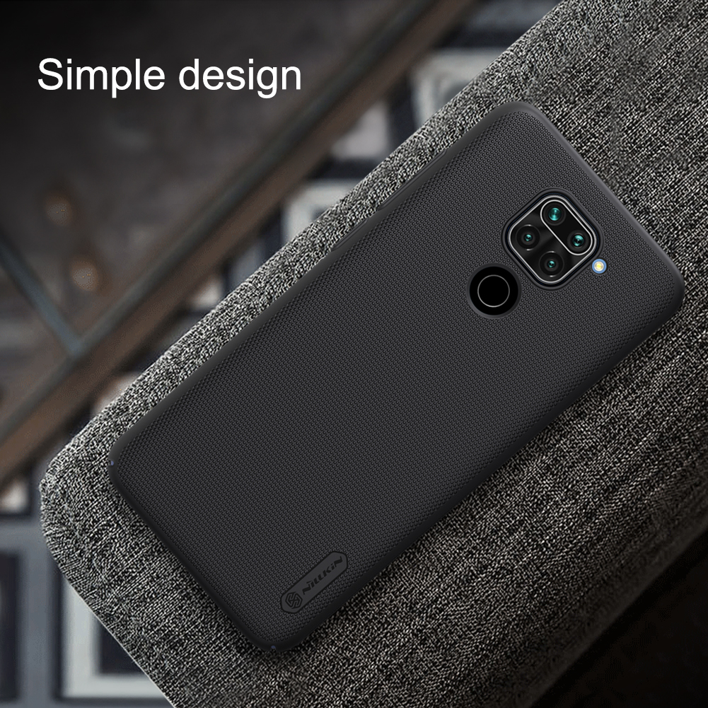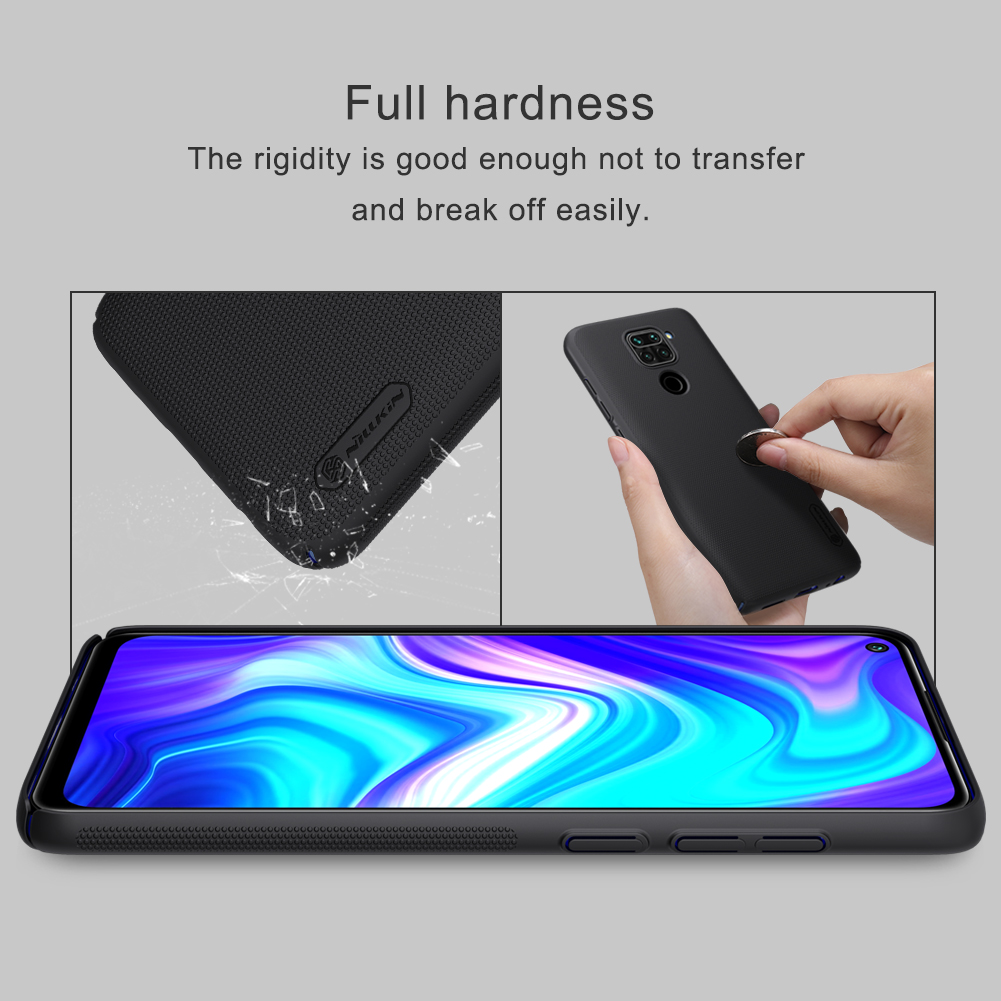 Тонкий чехол черного цвета от Nillkin серии Super Frosted Shield для смартфона Xiaomi Redmi Note 9 и Redmi 10X изготавливается из экологичных материалов путем высокоточного литья под давление с высокой температурой.