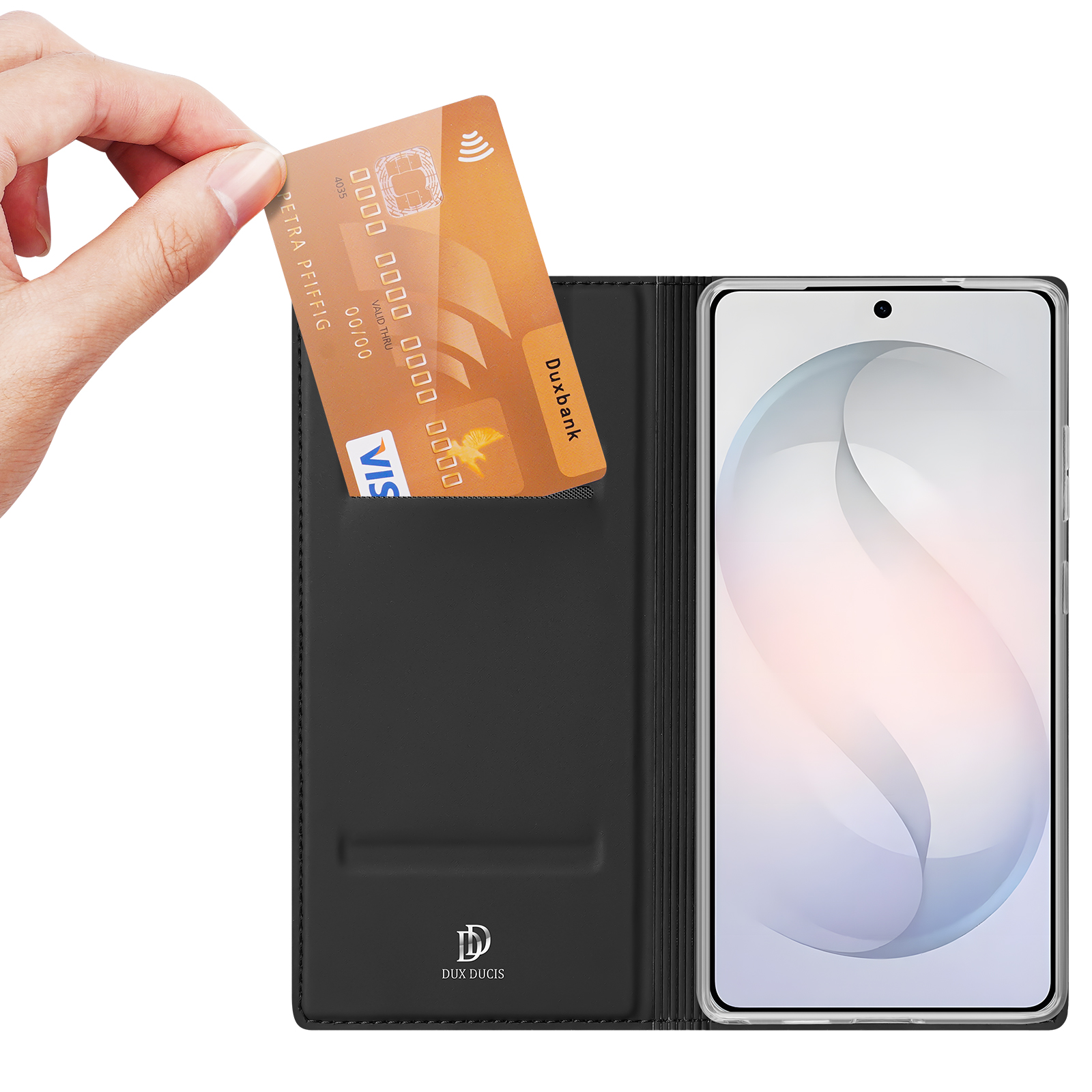 Чехол-книжка серии Skin Pro от бренда Dux Ducis выполнен из прочной кожи глубокого чёрного цвета и предназначен для защиты смартфона Samsung Galaxy S26 Ultra. Этот аксессуар сочетает классический стиль и современные технологии, обеспечивая надежную защиту устройства от повреждений и загрязнений. Качественная кожа приятна на ощупь и долговечна в использовании. Чехол оснащен специальной конструкцией, позволяющей легко открывать и закрывать его одной рукой, а также использовать в качестве удобной подставки для просмотра видео или чтения. Внутренняя поверхность чехла отделана мягким материалом, который бережно защищает экран и корпус смартфона от царапин и потертостей. Тонкая и изящная форма аксессуара сохраняет легкость и мобильность устройства, не утяжеляя его. Эргономичные прорези обеспечивают быстрый доступ к основным элементам управления и камерам смартфона, не влияя на его функциональность. Лаконичный дизайн и качественный материал делают этот чехол идеальным выбором для тех, кто ценит надежность, стиль и комфорт в повседневной эксплуатации своего устройства.