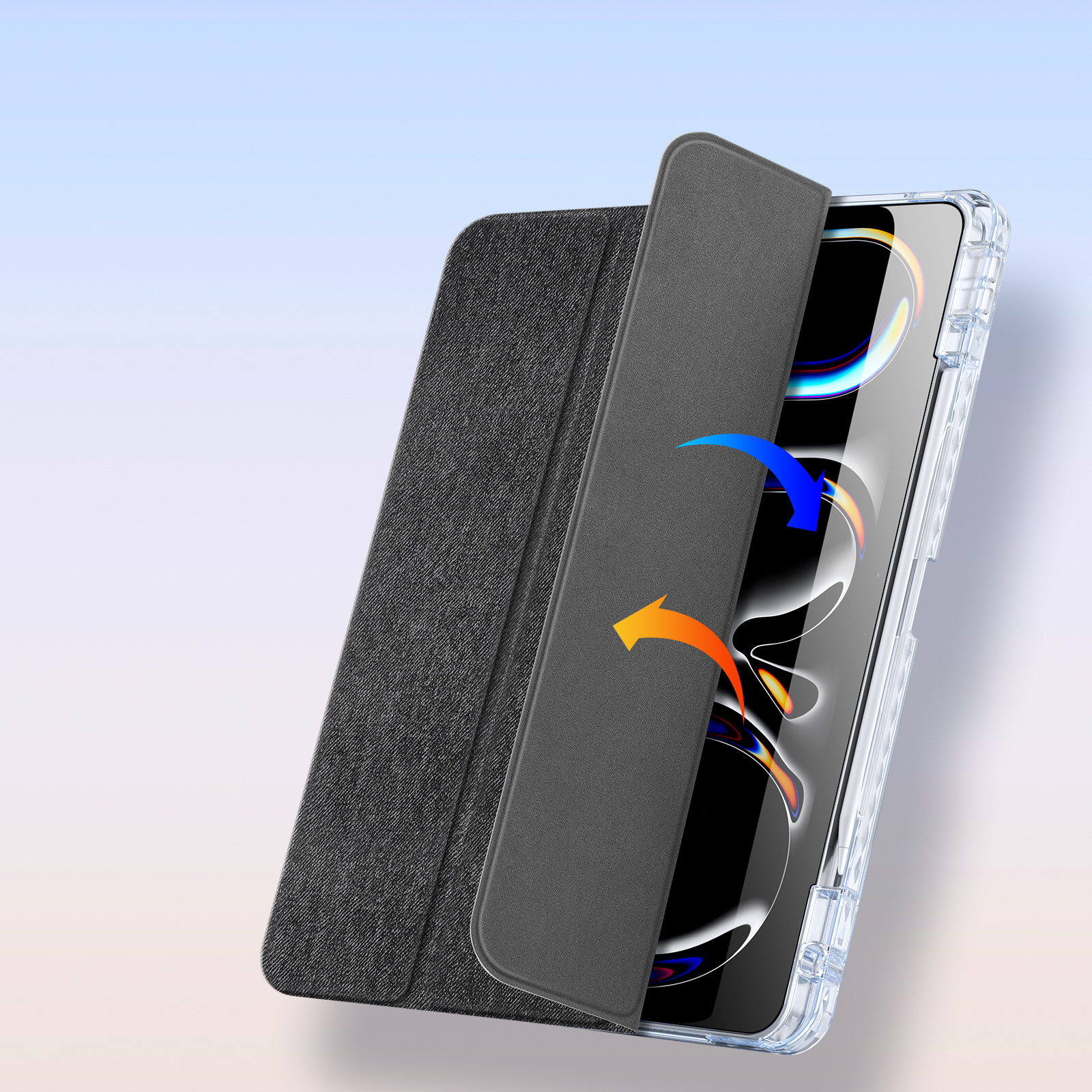 Чехол книжка черного цвета от Dux Ducis для Apple iPad Pro 13 с 2024 года, серия Unid Series Case, с держателем Apple Pencil и функцией автоматического перехода в спящий режим.