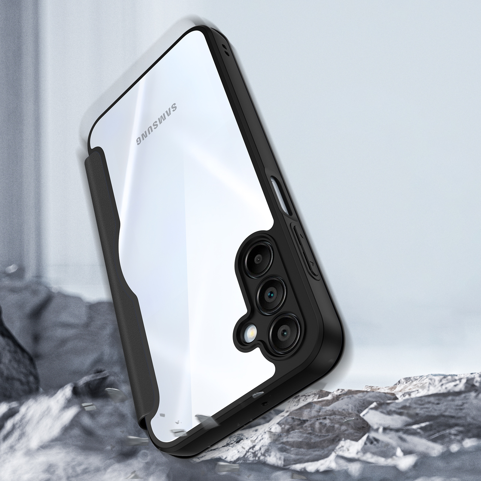Чехол-книжка для Samsung Galaxy A16 5G и 4G с прозрачной задней крышкой.