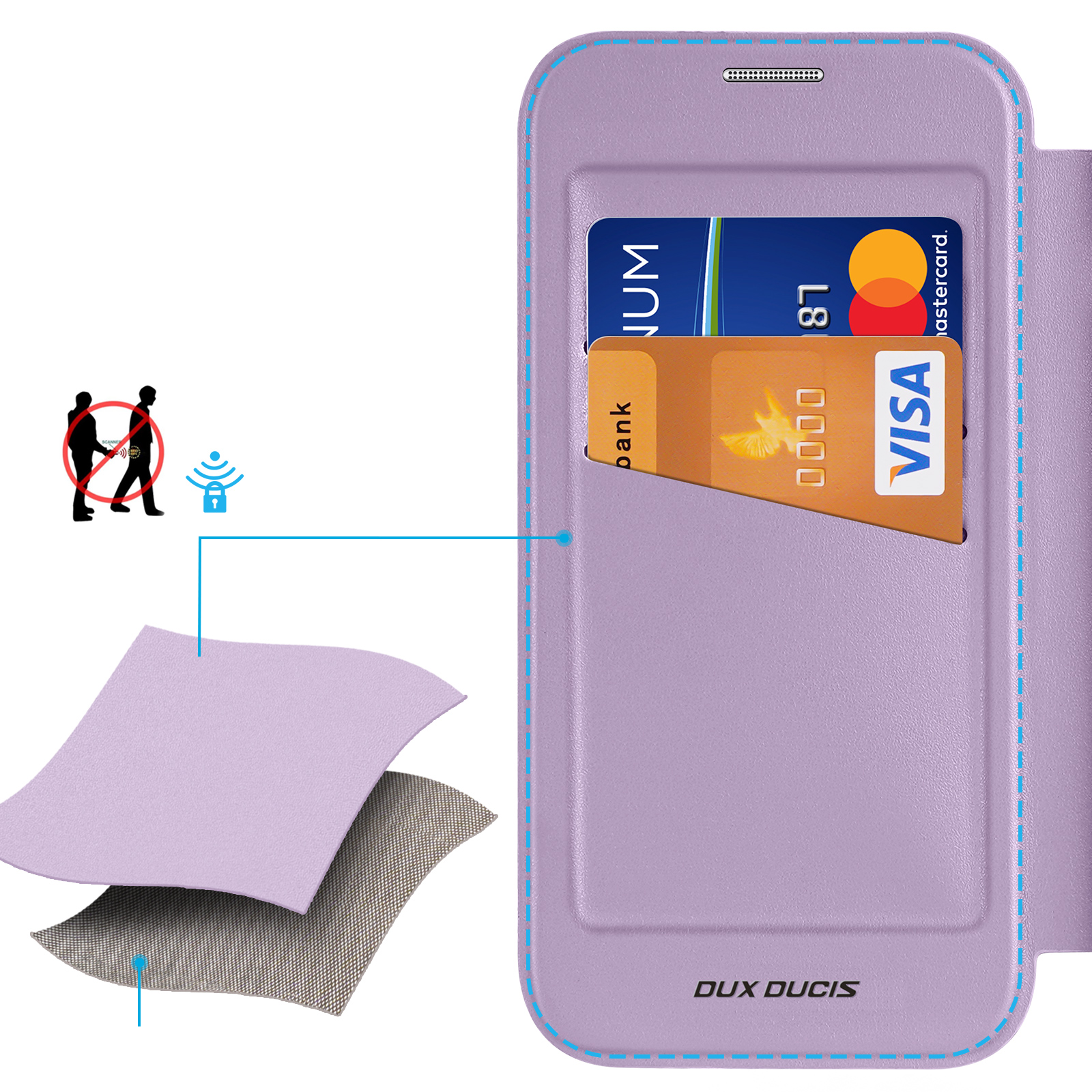 Чехол-книжка фиолетового цвета (Purple Pink) серии Skin X Pro Series с MagSafe для iPhone 17 Pro от Dux Ducis.