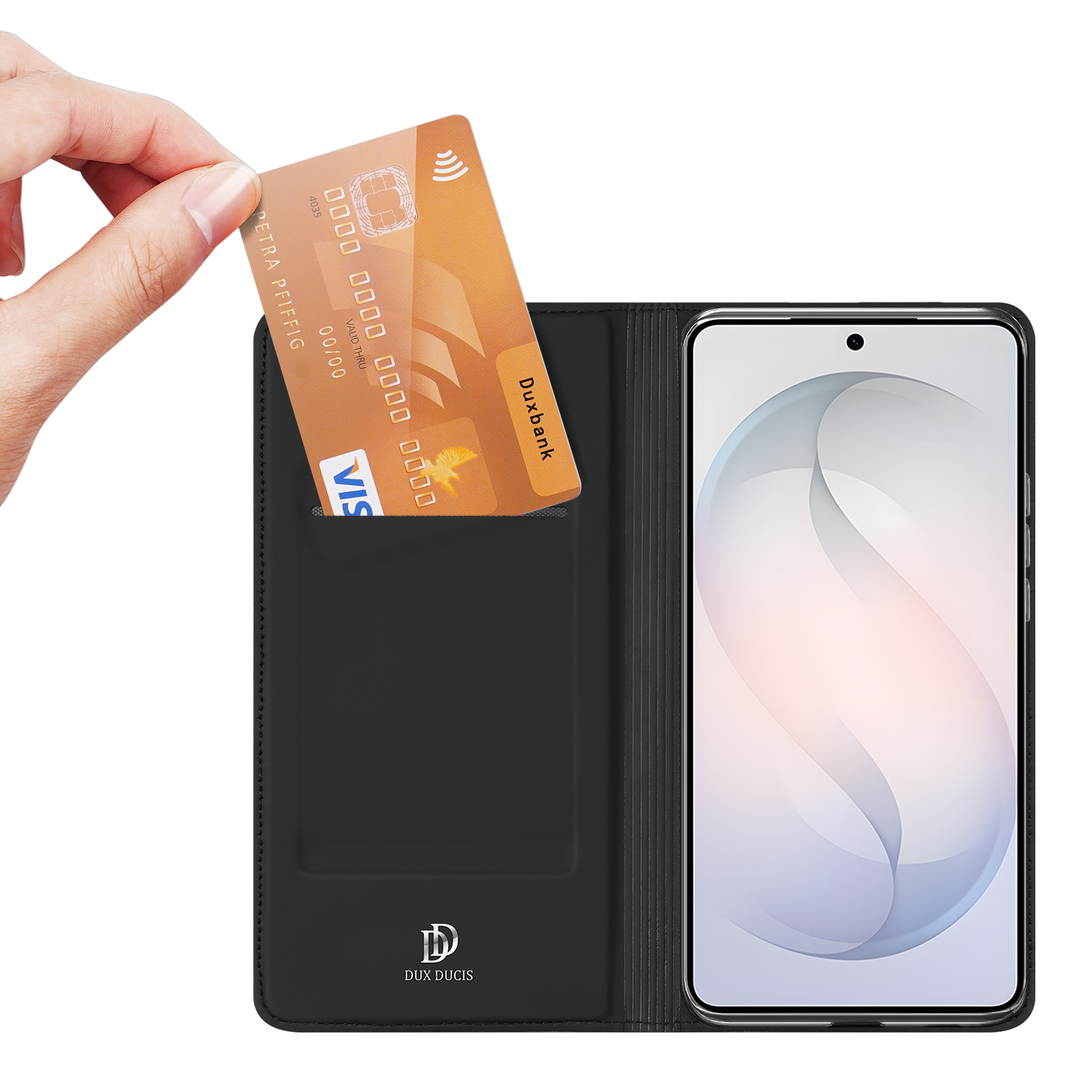 Чехол-книжка серии Skin Pro от бренда Dux Ducis изготовлен из высококачественной кожи классического черного цвета специально для модели Samsung Galaxy S26 Plus. Это универсальное решение, сочетающее в себе стиль и максимальную защиту вашего устройства. Чехол имеет аккуратную конструкцию с удобным отделением для кредитных карт и важных документов, позволяя держать все необходимое под рукой. Плотная фиксация крышки надежно удерживает смартфон, защищая его от ударов и царапин. Подходит для деловых людей и тех, кто ценит стиль и функциональность.