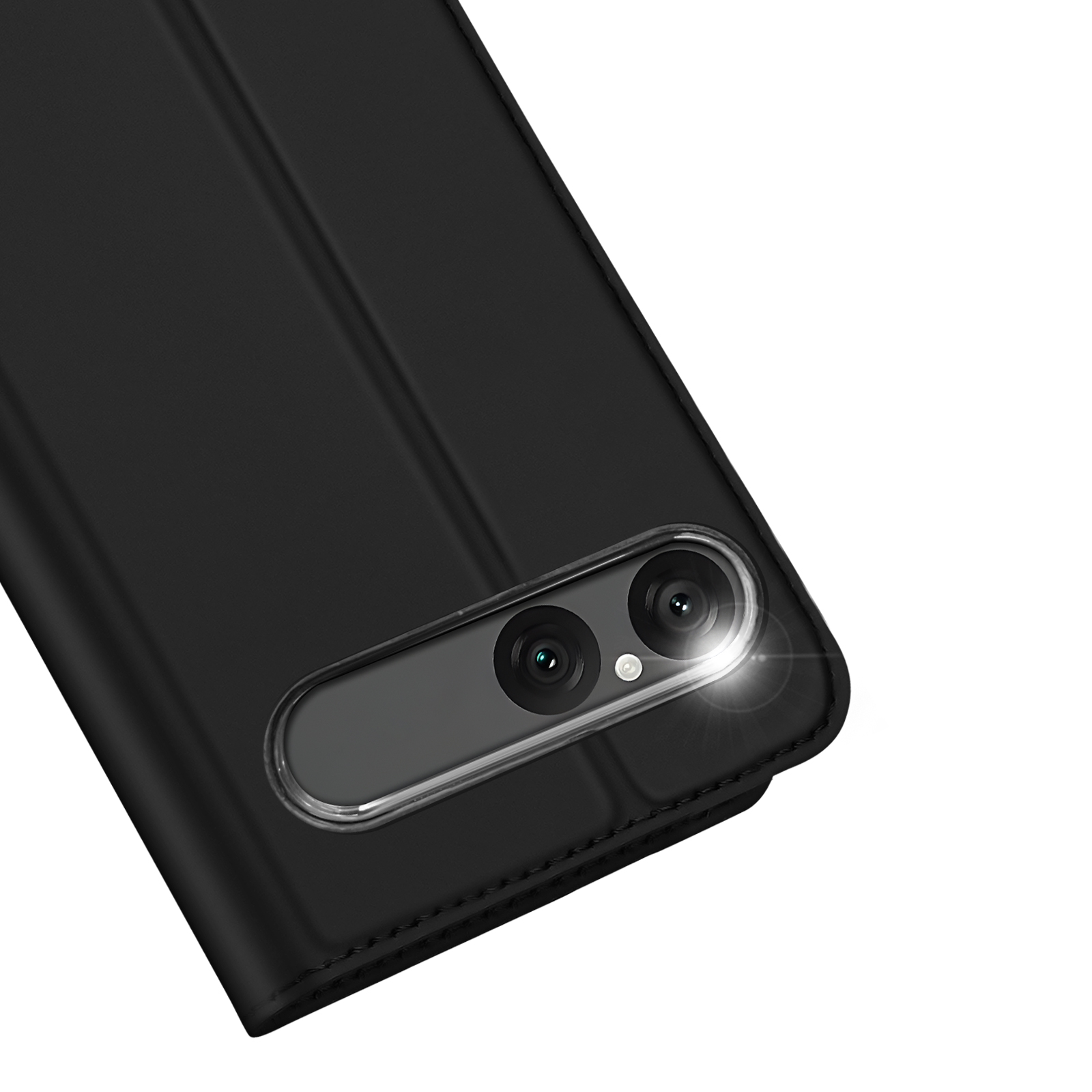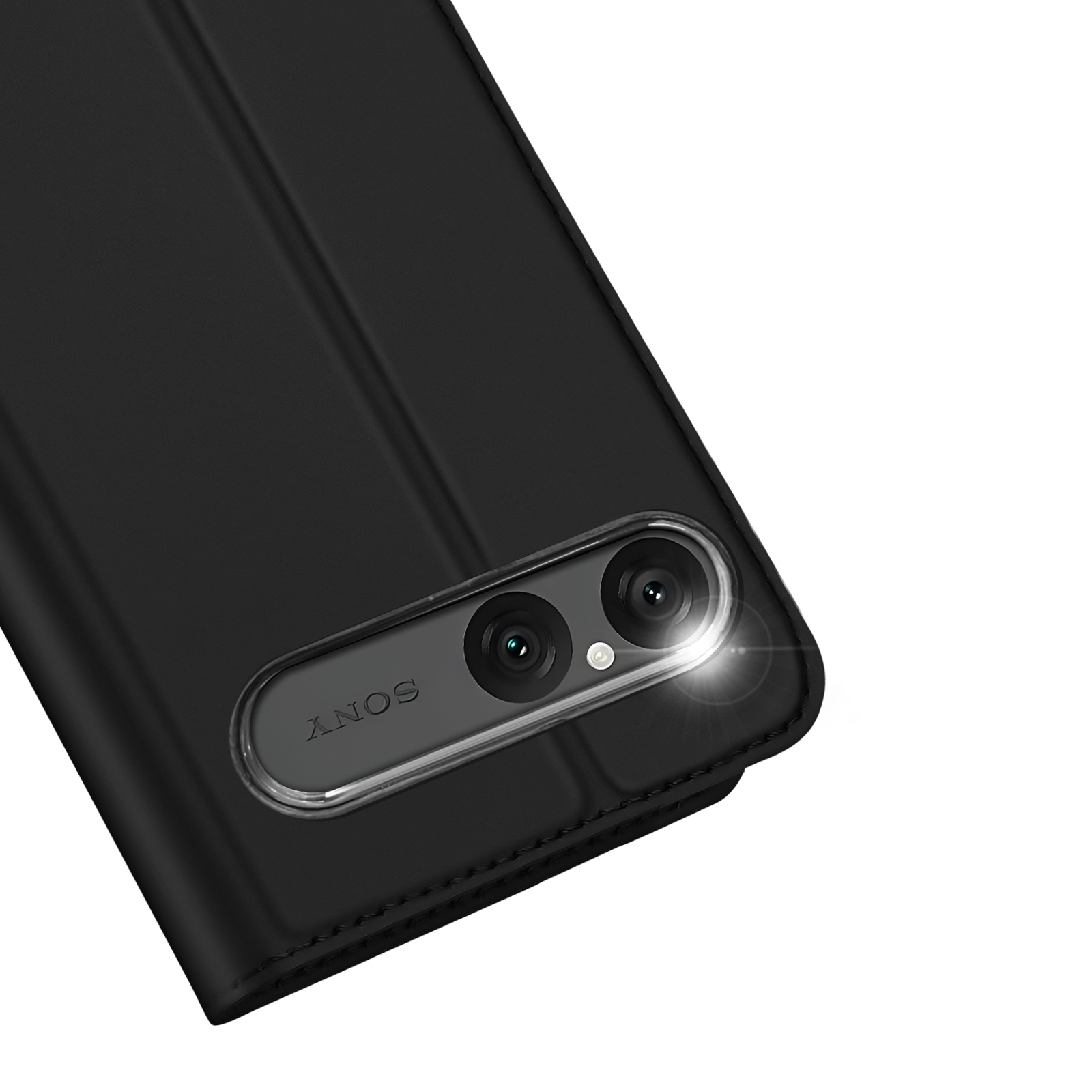 Чехол книжка черного цвета от Dux Ducis изготовлен из высококачественной синтетической PU кожи с прозрачной задней крышкой TPU для смартфона Sony Xperia 10 VII (10-7), серия Skin Pro Series Case