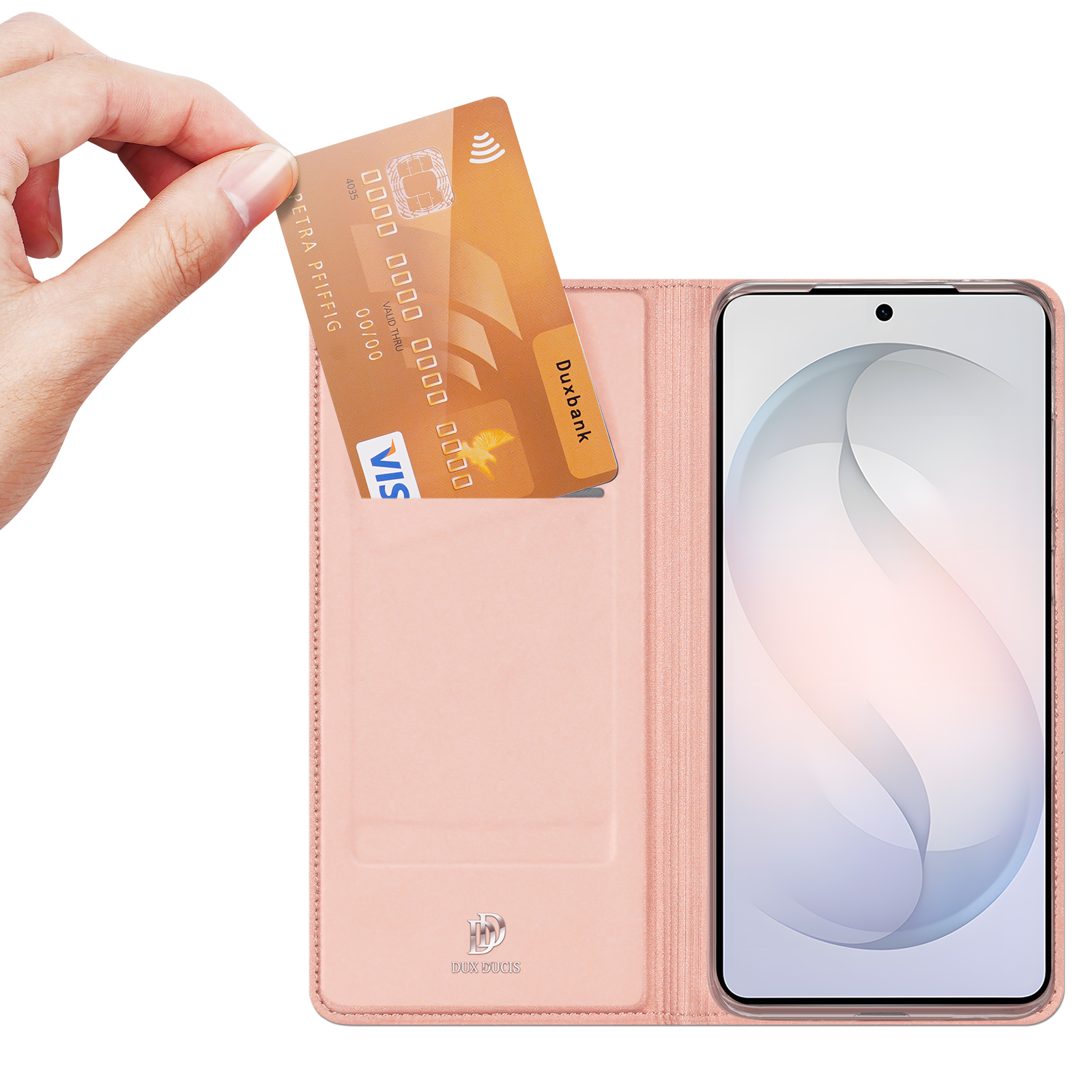 Чехол-книжка серии Skin Pro от бренда Dux Ducis выполнен из кожи нежно-розового оттенка и предназначен для защиты смартфона Samsung Galaxy S26 Plus. Этот аксессуар гармонично объединяет стильный дизайн и высокую функциональность, обеспечивая вашему устройству надежную защиту от повреждений и загрязнений. Чехол имеет удобные отделения для хранения пластиковых карт и небольших документов, превращая его в компактный кошелек. Внутренняя поверхность чехла покрыта мягким материалом, который эффективно предотвращает появление царапин на экране и корпусе смартфона. Модель оснащена магнитным механизмом, позволяющим легко открывать и закрывать крышку одной рукой. Специальные отверстия обеспечивают свободный доступ к камере и другим элементам управления, не мешая полноценной эксплуатации устройства. Когда чехол открыт, он служит удобной подставкой для комфортного просмотра видео или чтения. Элегантный логотип бренда на передней панели подчеркивает премиальный характер аксессуара. Чехол-книжка станет превосходным выбором для тех, кто стремится совместить красоту, практичность и безопасность своего смартфона.