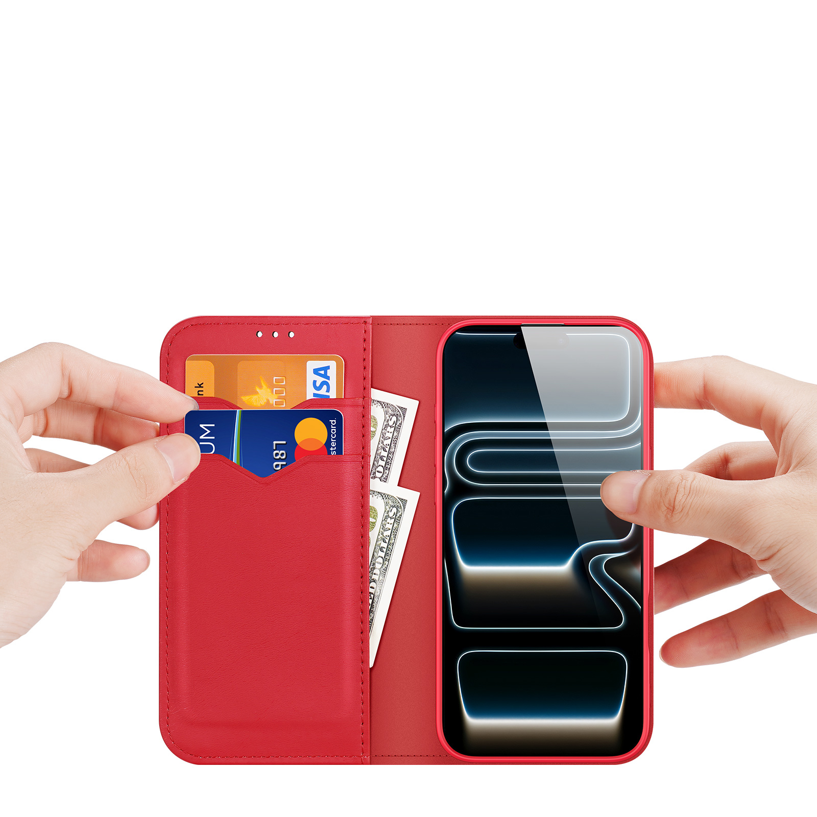 Магнитная застежка гарантирует, что он будет плотно закрываться все время, чтобы карты и наличные не падали.