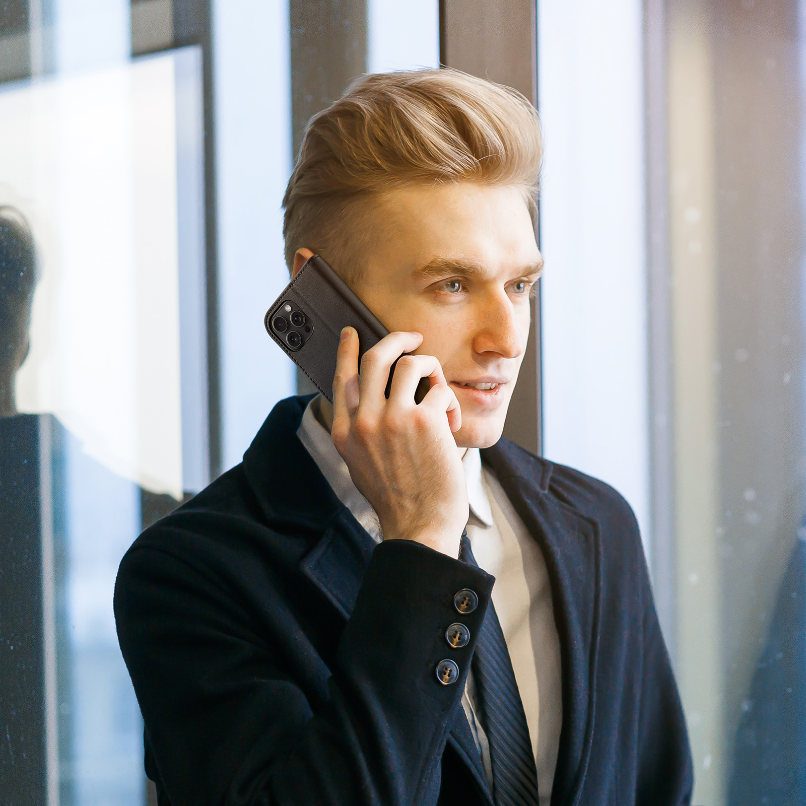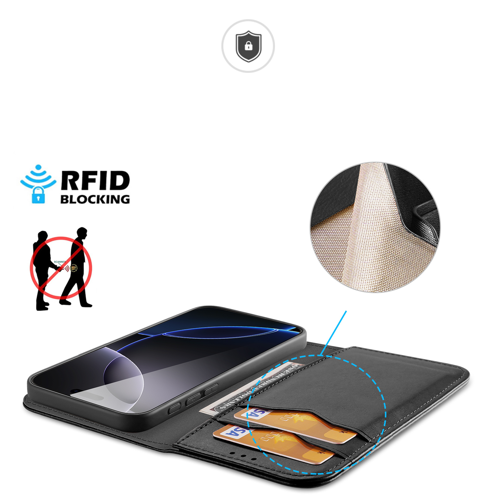 Чехол книжка из натуральной кожи с защитой RFID от Dux Ducis для смартфона iPhone 16 Pro, серия Hivo Series Case