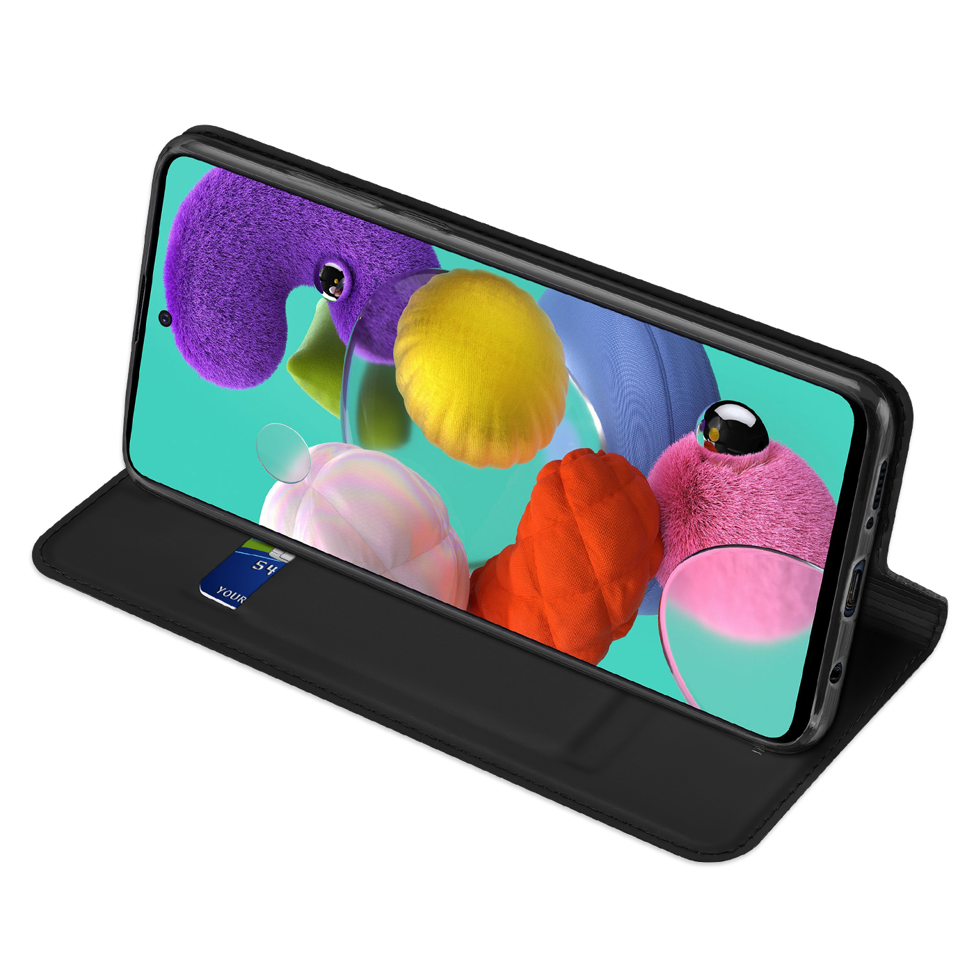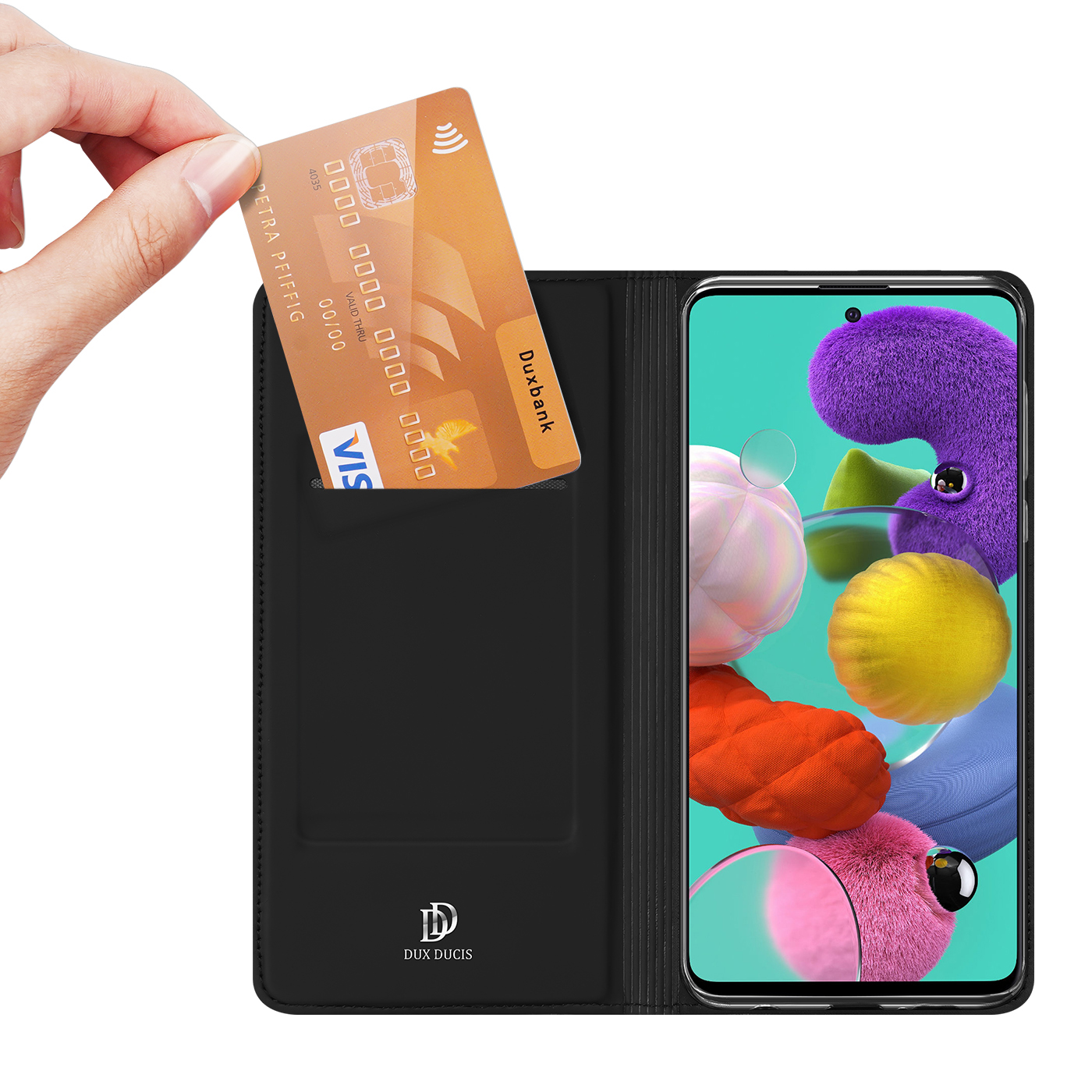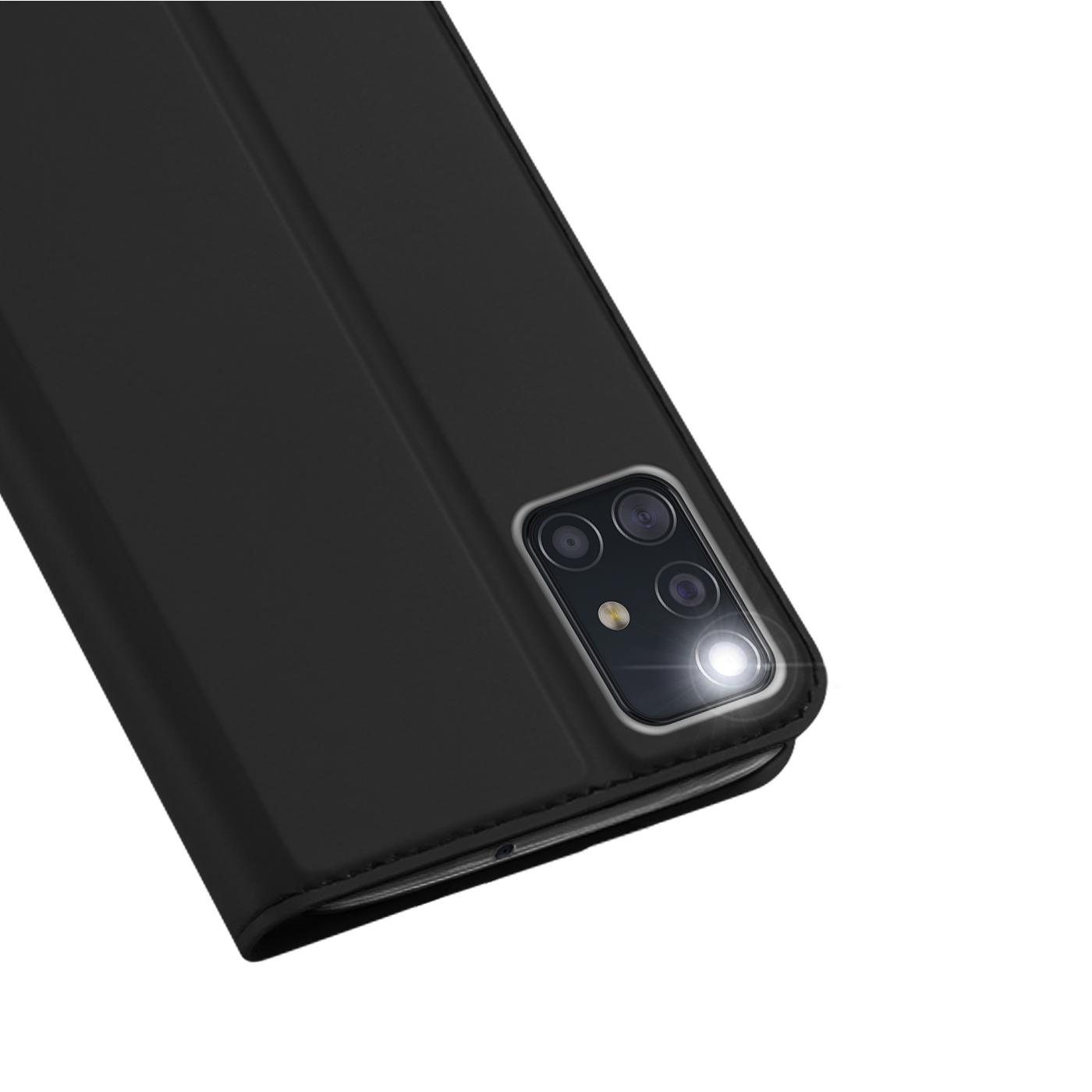 Чехол книжка черного цвета от Dux Ducis изготовлен из высококачественной синтетической PU кожи с прозрачной задней крышкой TPU для смартфона Samsung Galaxy A51, серия Skin Pro Series Case