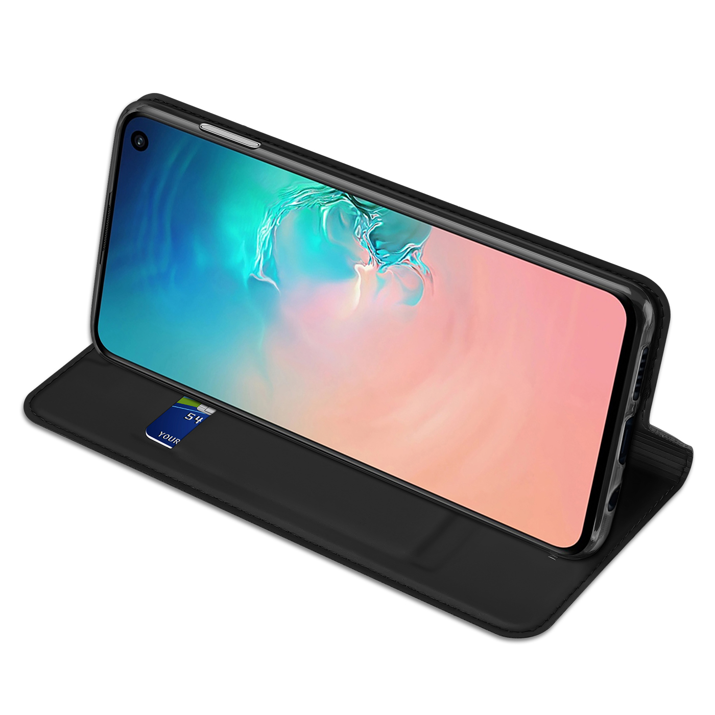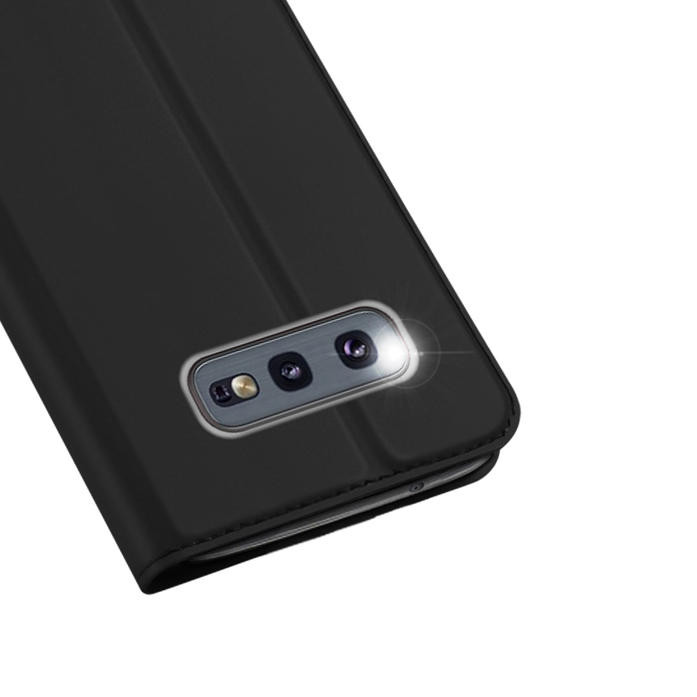 Чехол книжка черного цвета от Dux Ducis изготовлен из высококачественной синтетической PU кожи с прозрачной задней крышкой TPU для смартфона Samsung Galaxy S10e, серия Skin Pro Series Case