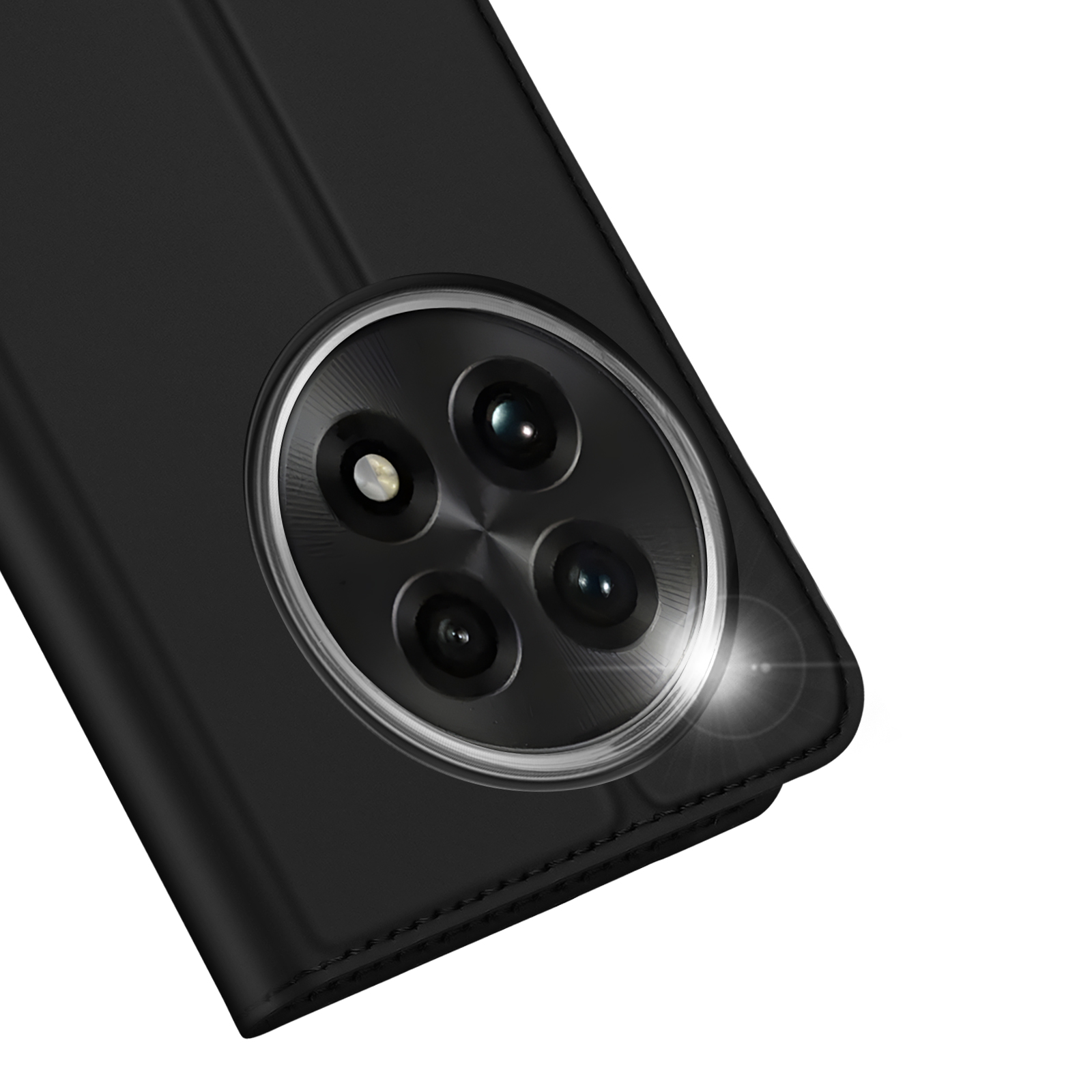Чехол книжка черного цвета от Dux Ducis изготовлен из высококачественной синтетической PU кожи с прозрачной задней крышкой TPU для смартфона OnePlus 13, серия Skin Pro Series Case
