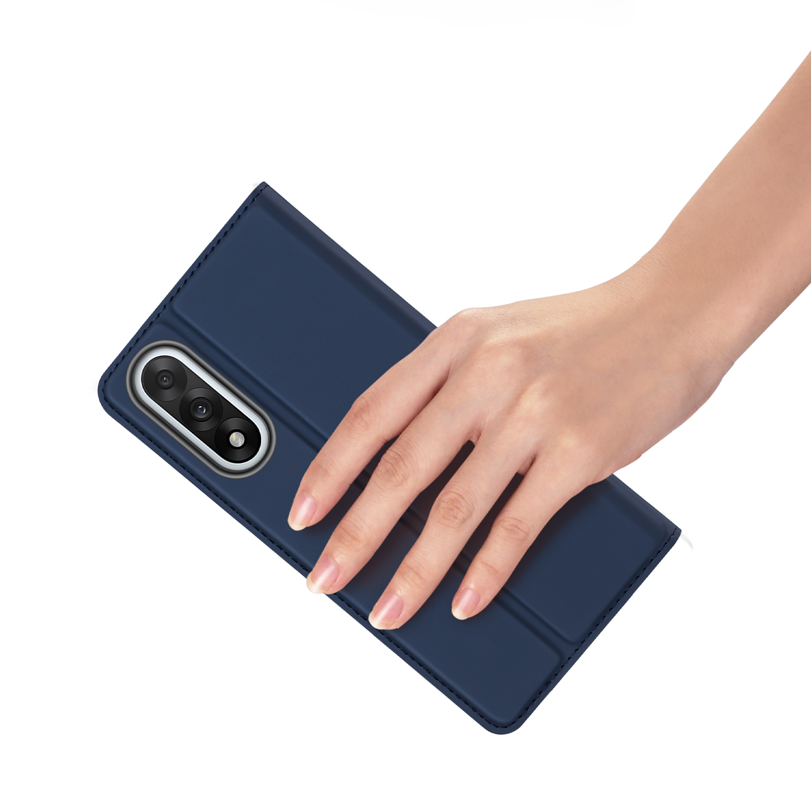 Чехол книжка синего цвета от Dux Ducis изготовлен из высококачественной синтетической PU кожи с прозрачной задней крышкой TPU для смартфона OnePlus Nord 5 и Ace 5 Ultra, серия Skin Pro Series Case