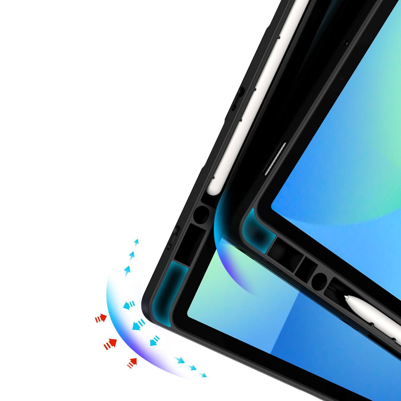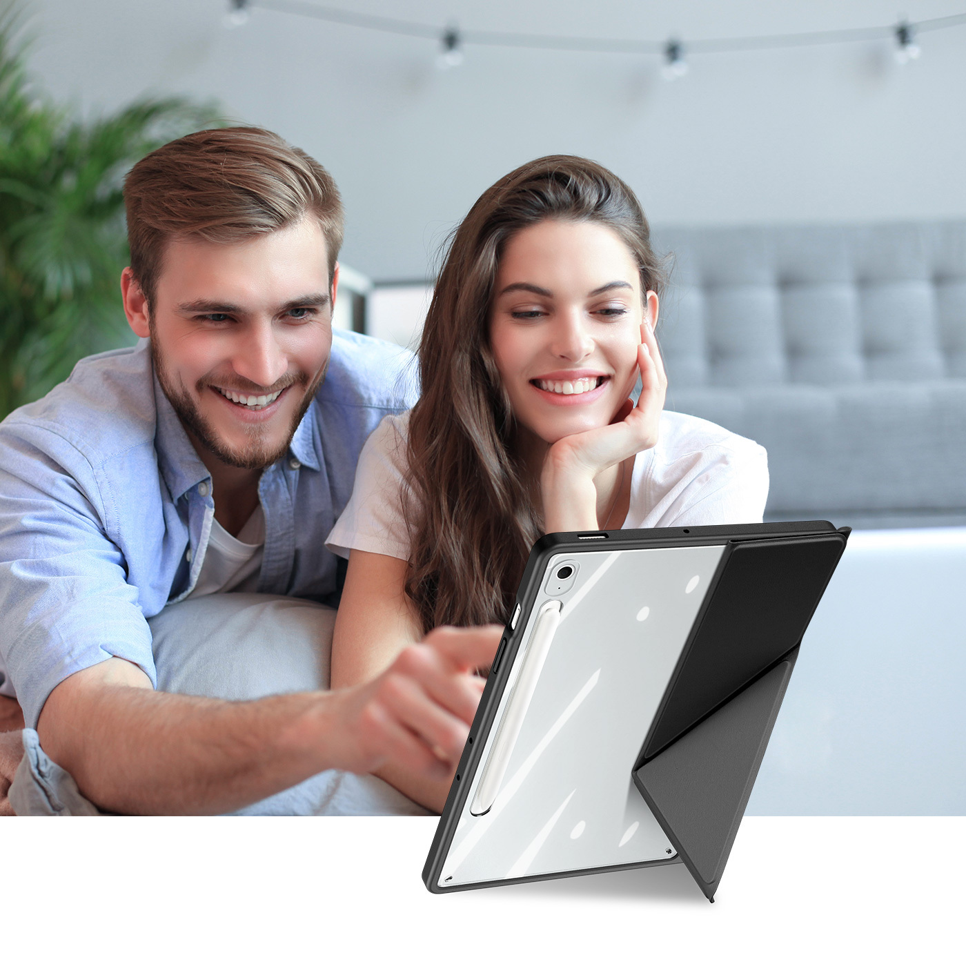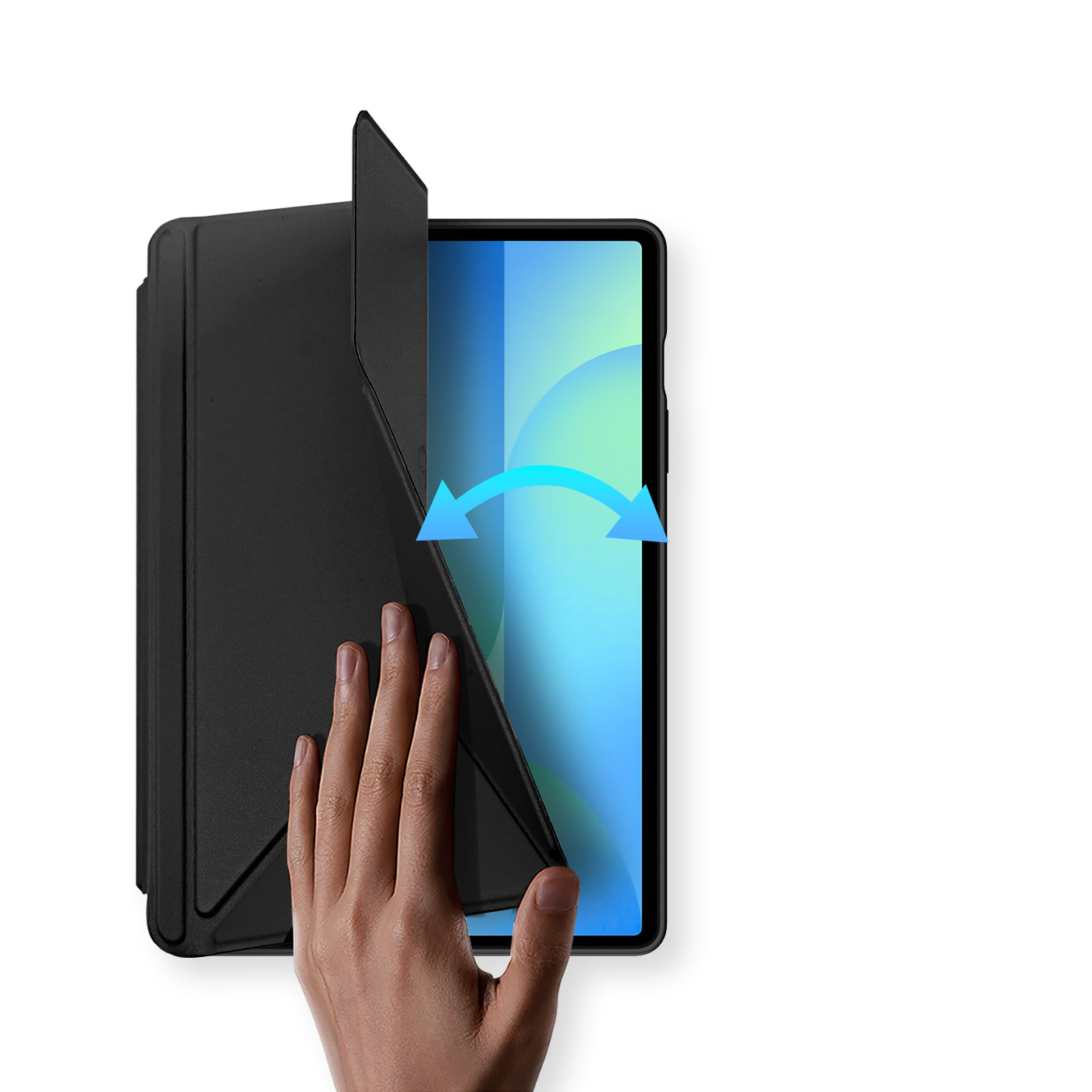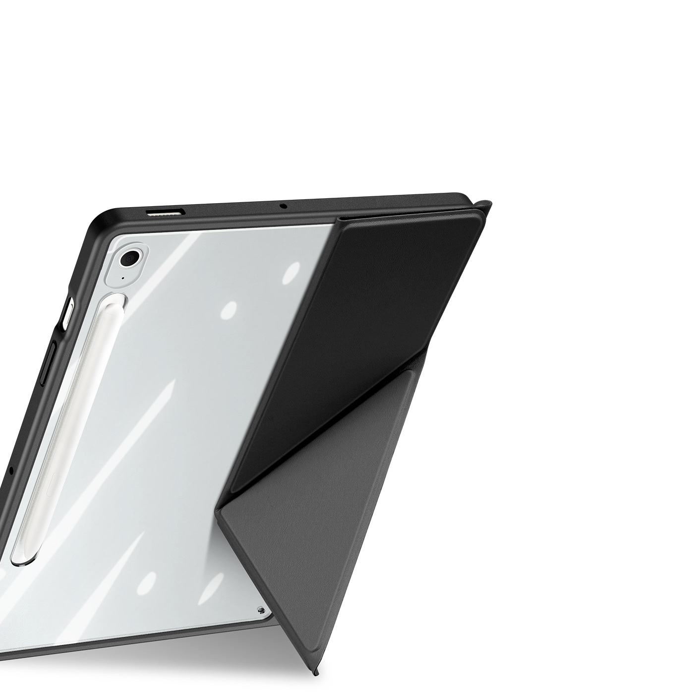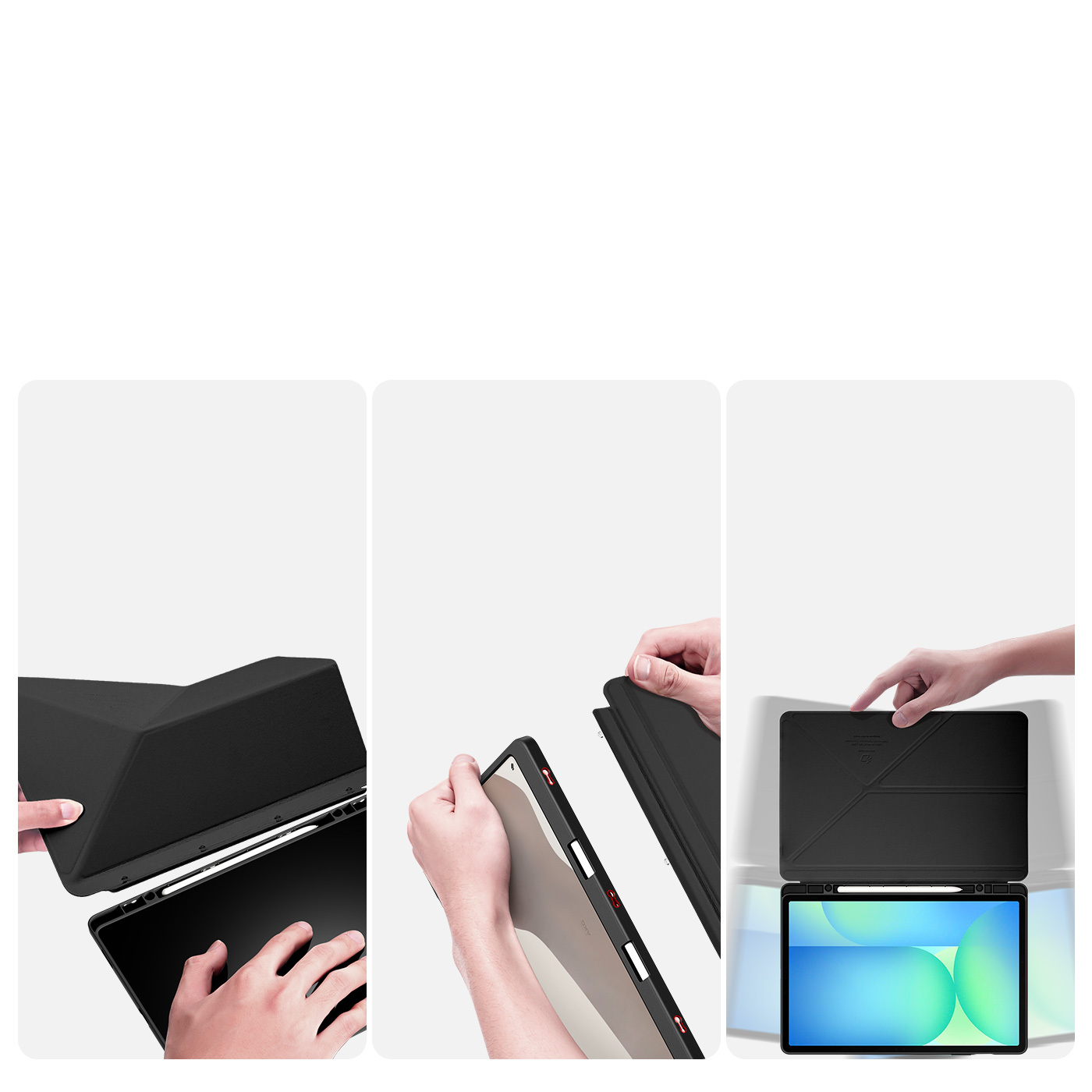 Чехол книжка черного цвета от Dux Ducis для Samsung Galaxy Tab S10 FE+, серия Magi Series Case, с держателем Apple Pencil и функцией автоматического перехода в спящий режим. Многофункциональная система складывания.