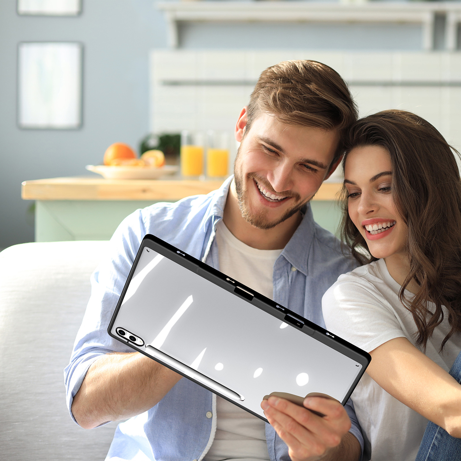 Чехол книжка черного цвета от Dux Ducis для Samsung Galaxy Tab S9 Ultra, Tab S10 Ultra и Tab S8 Ultra, серия Magi Series Case, с держателем Apple Pencil и функцией автоматического перехода в спящий режим. Многофункциональная система складывания.