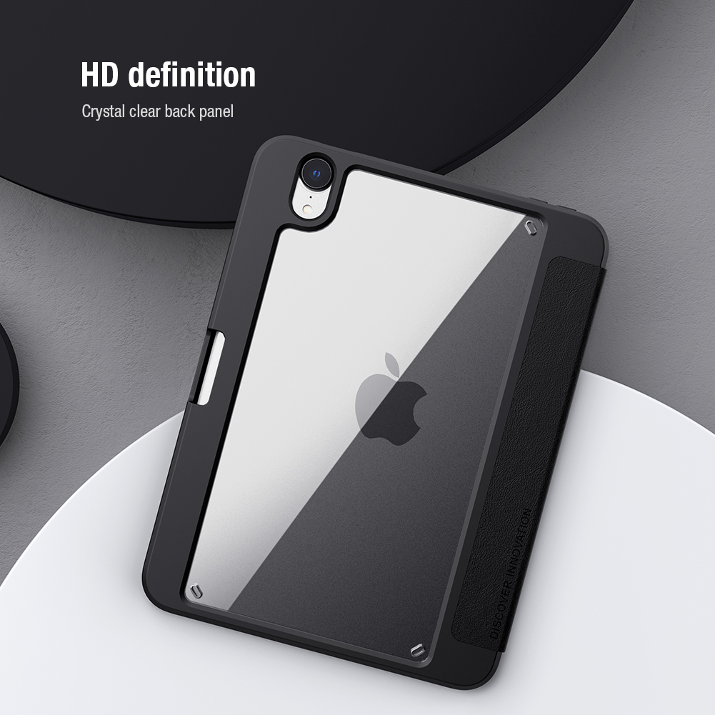 Противоударный кожаный чехол книжка с магнитной крышкой от Nillkin серии Bevel Leather Case для планшета iPad Mini 6 с 2021 года.