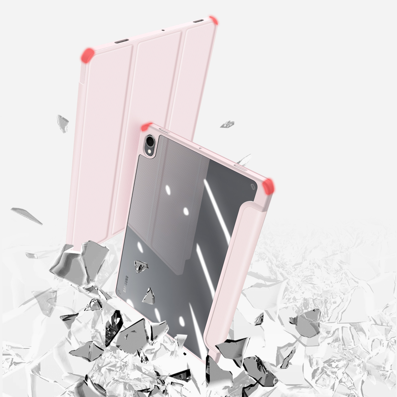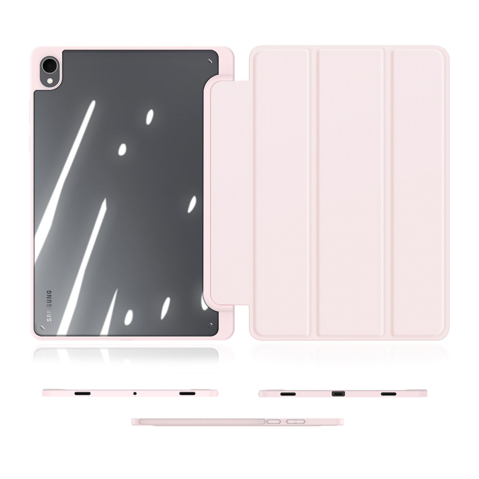 Чехол книжка розового цвета от Dux Ducis для Samsung Galaxy Tab S11, серия Toby Series Case, с функцией автоматического перехода в спящий режим. Многофункциональная система складывания.