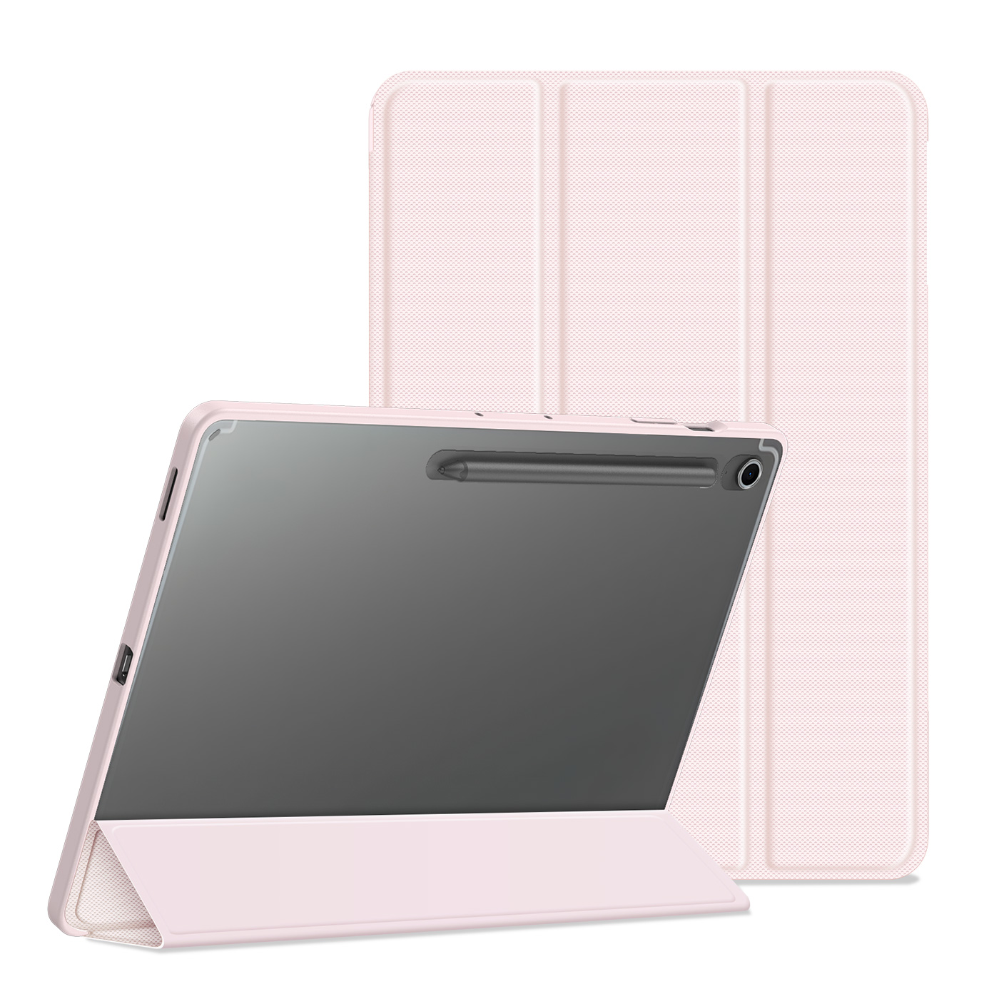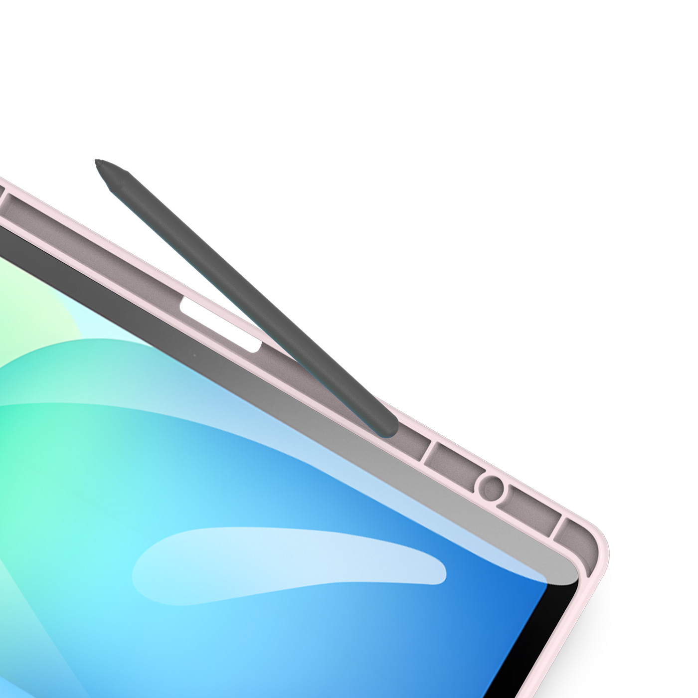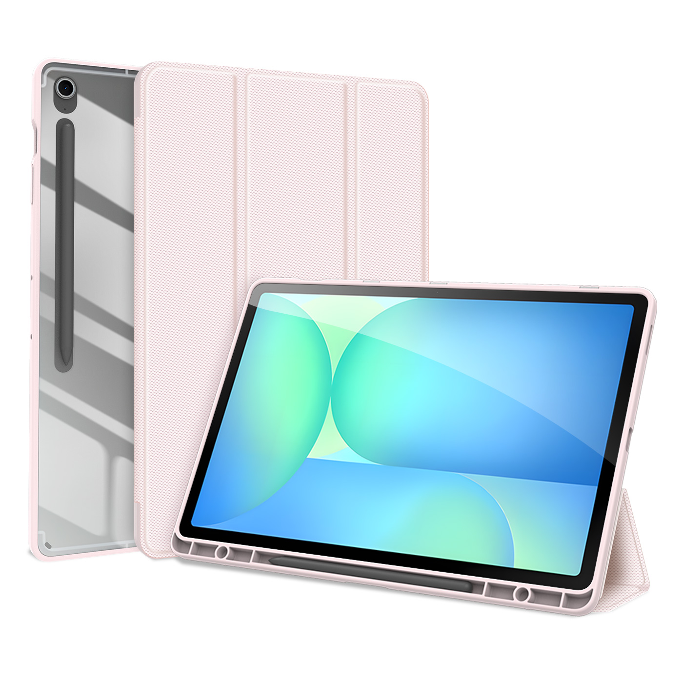 Чехол книжка розового цвета от Dux Ducis для Samsung Galaxy Tab S10 FE Plus, серия Toby Series Case, с функцией автоматического перехода в спящий режим. Многофункциональная система складывания.