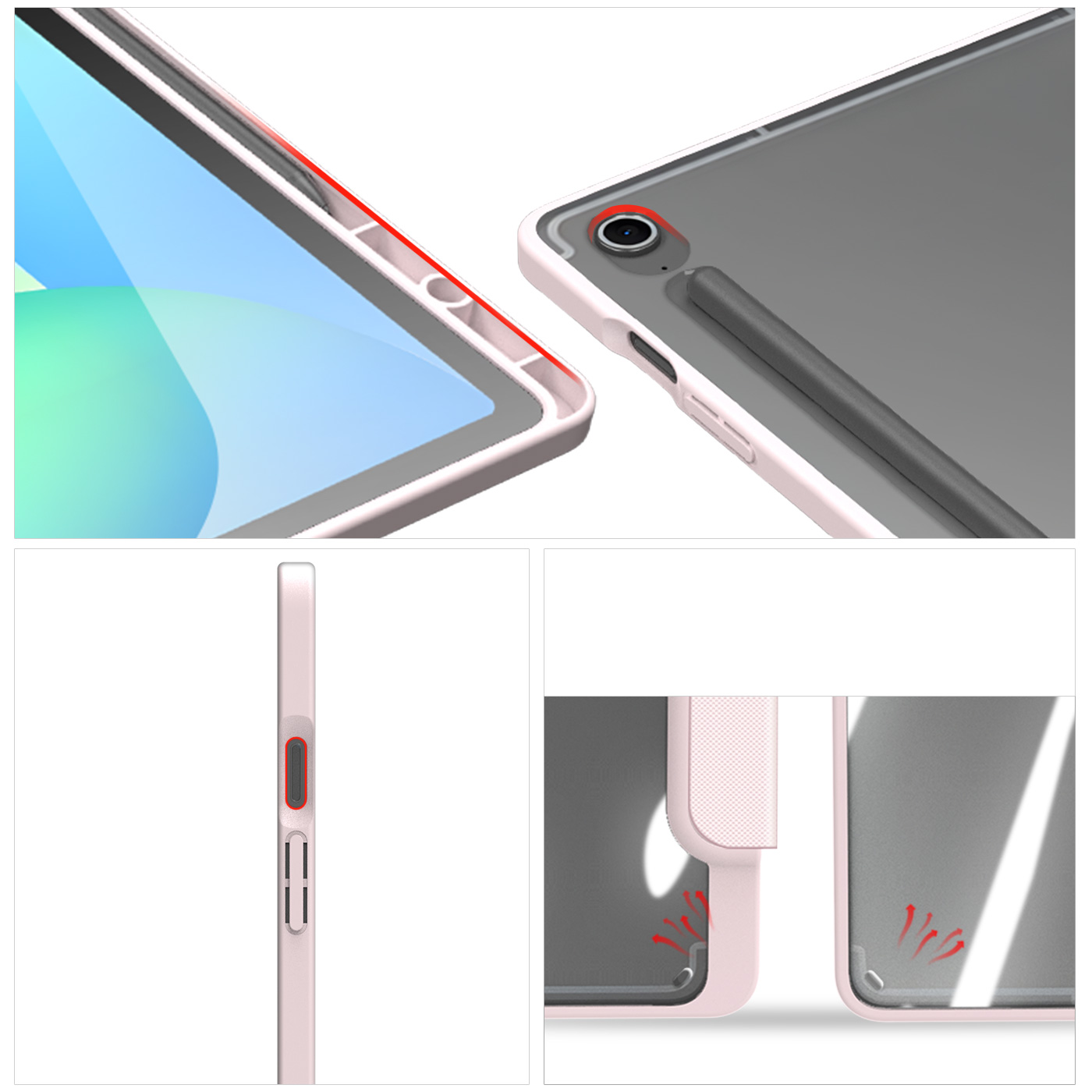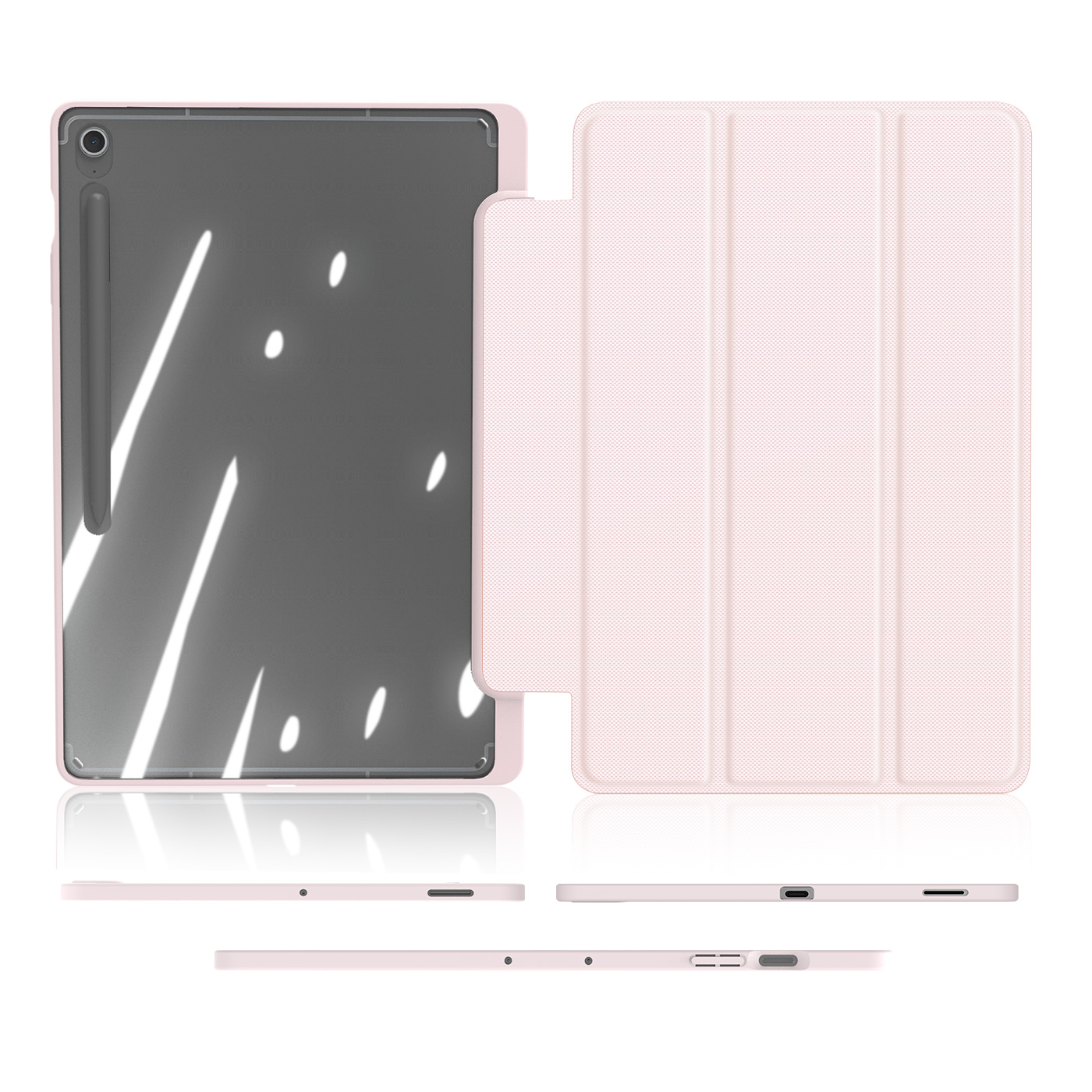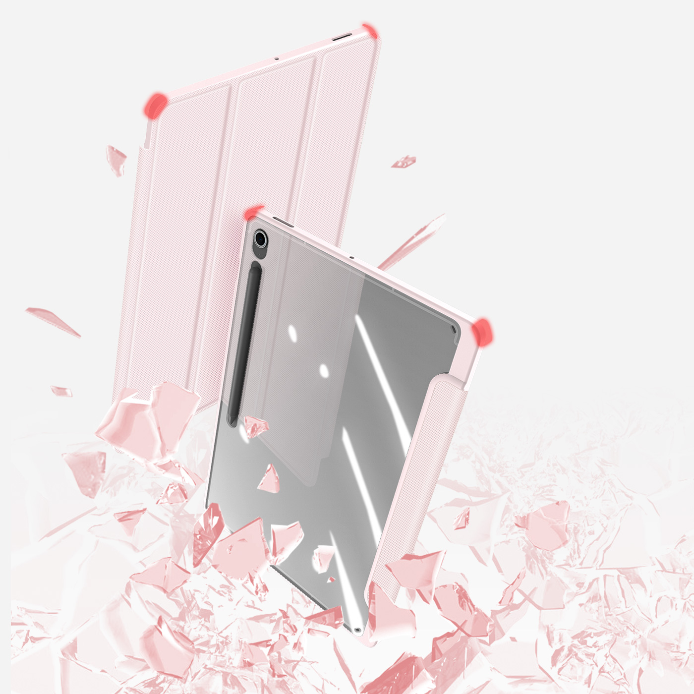 Чехол книжка розового цвета от Dux Ducis для Samsung Galaxy Tab S10 FE Plus, серия Toby Series Case, с функцией автоматического перехода в спящий режим. Многофункциональная система складывания.