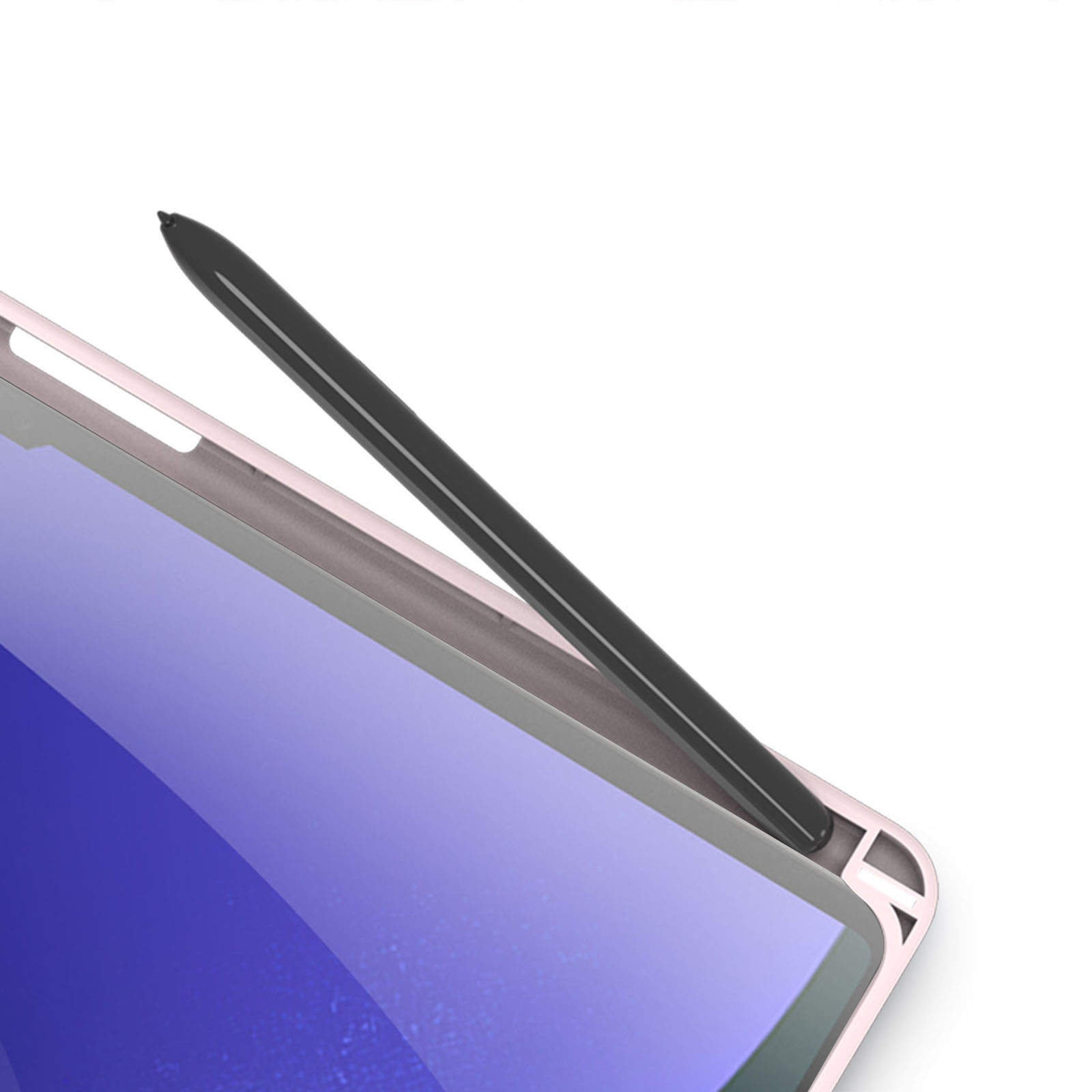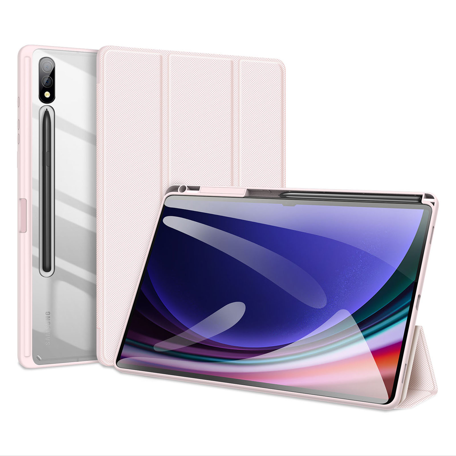 Чехол книжка розового цвета от Dux Ducis для Samsung Tab S10 Plus, S9 Plus и S9 FE Plus, серия Toby Series Case, с функцией автоматического перехода в спящий режим. Многофункциональная система складывания.