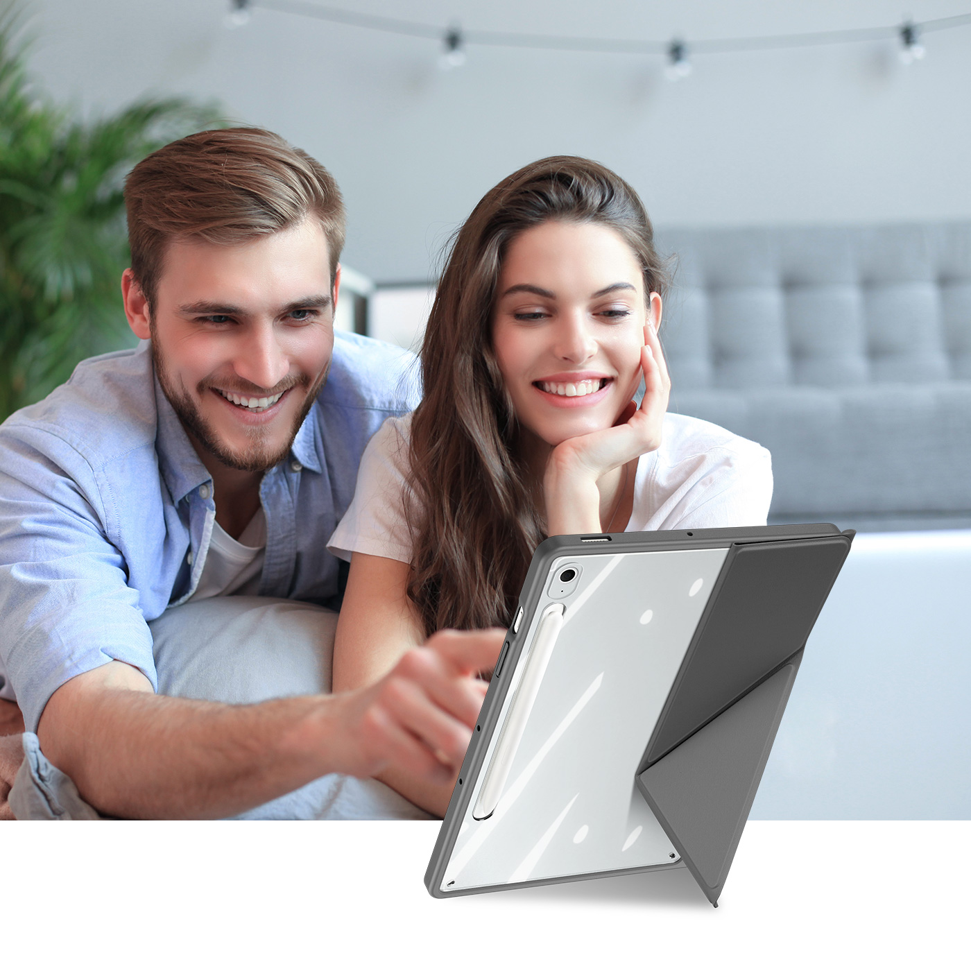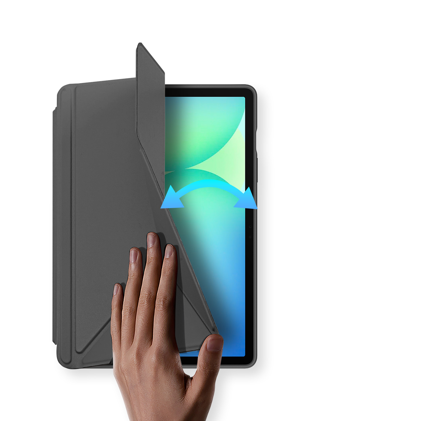 Чехол книжка серого цвета от Dux Ducis для Samsung Galaxy Tab S10 FE+, серия Magi Series Case, с держателем Apple Pencil и функцией автоматического перехода в спящий режим. Многофункциональная система складывания.
