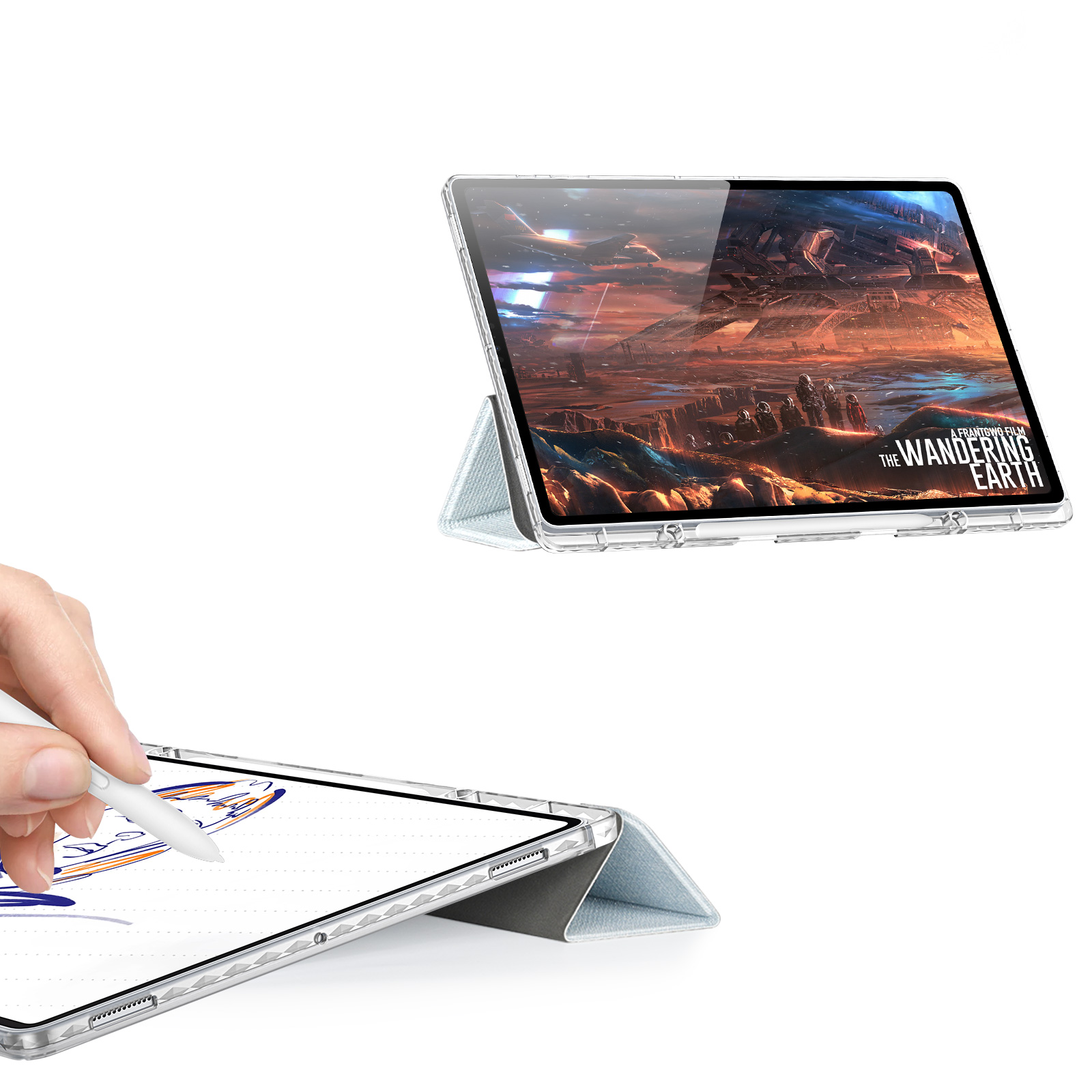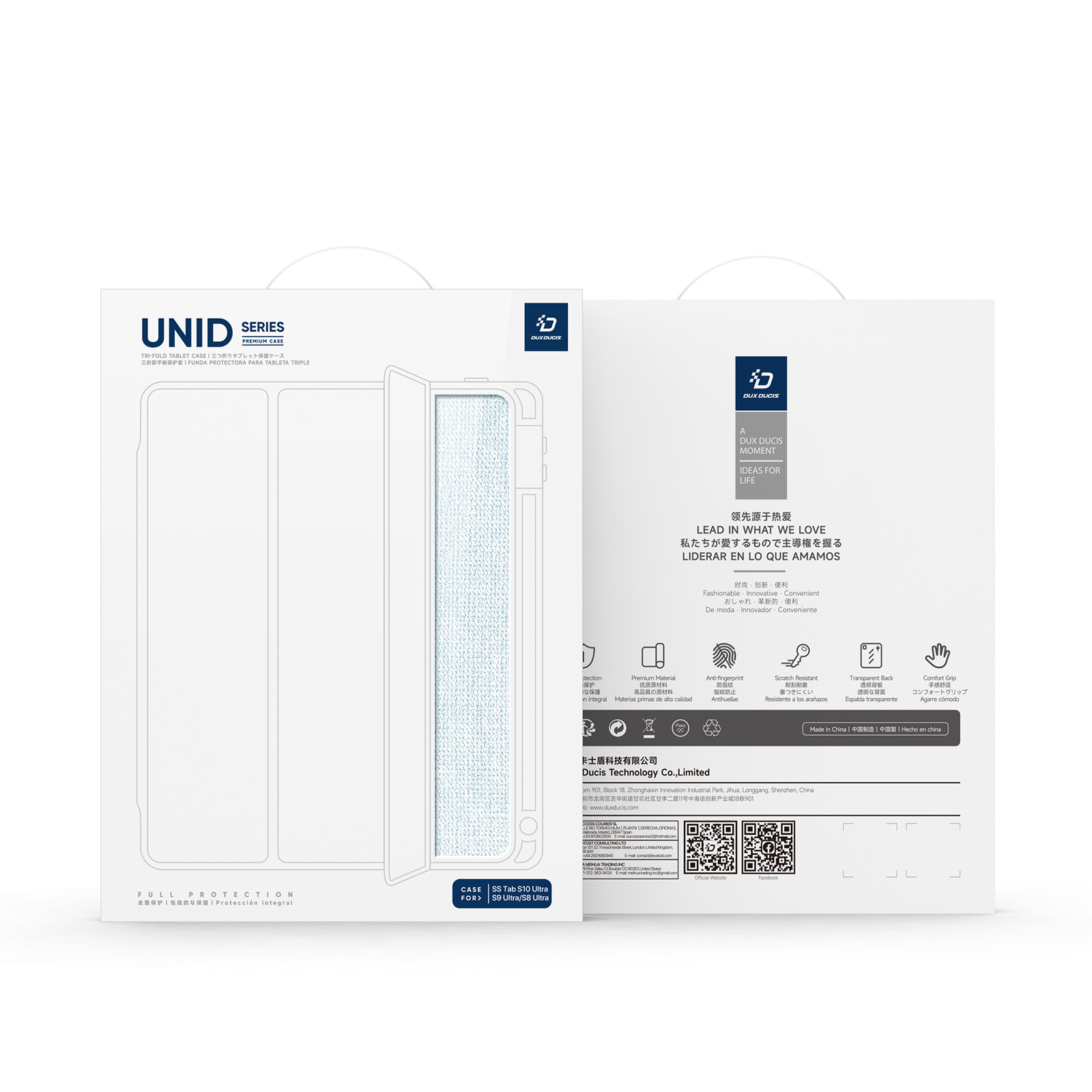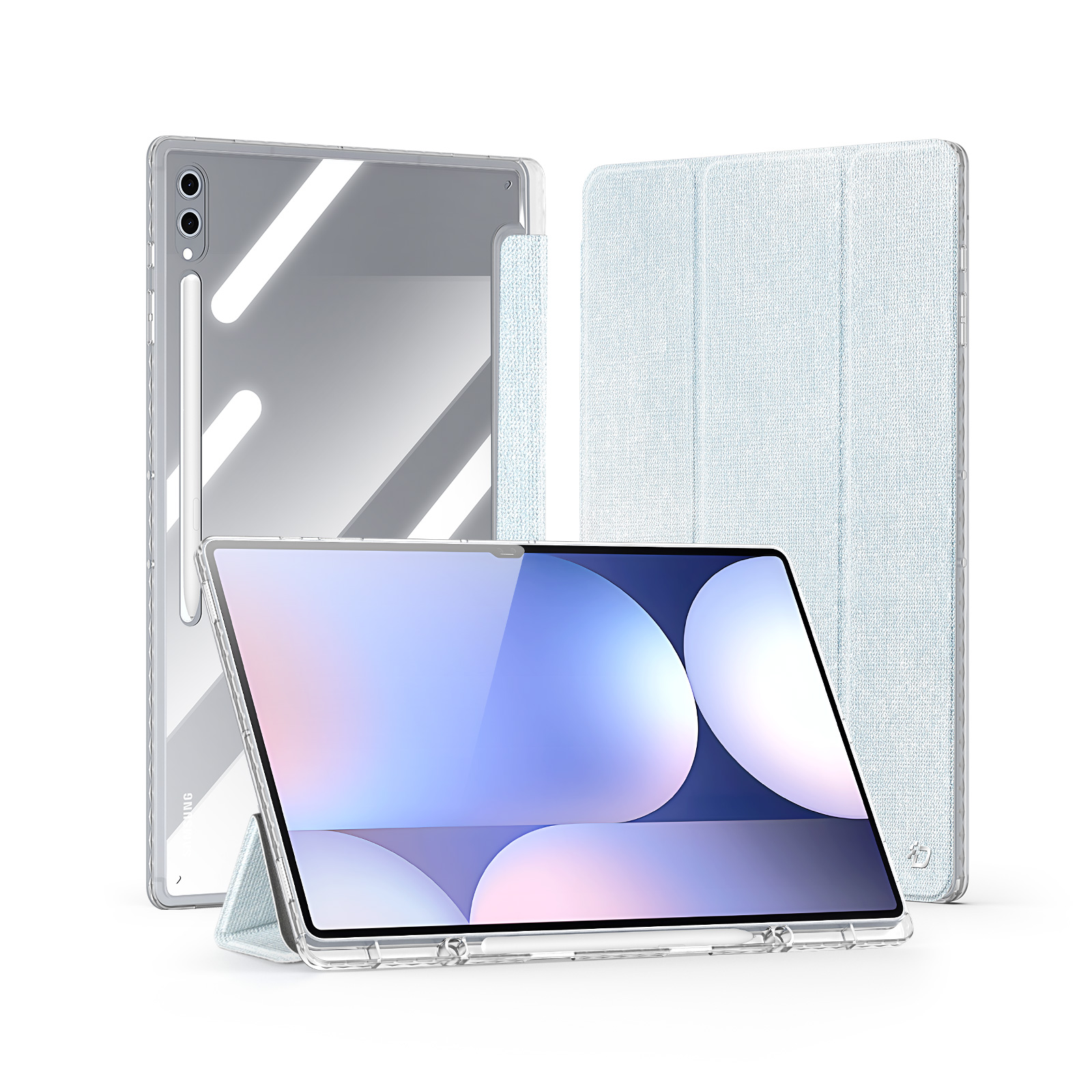 Чехол книжка синего цвета от Dux Ducis для Samsung Galaxy Tab S9 Ultra, Tab S10 Ultra и Tab S8 Ultra, серия Unid Series Case, с держателем стилуса и функцией автоматического перехода в спящий режим