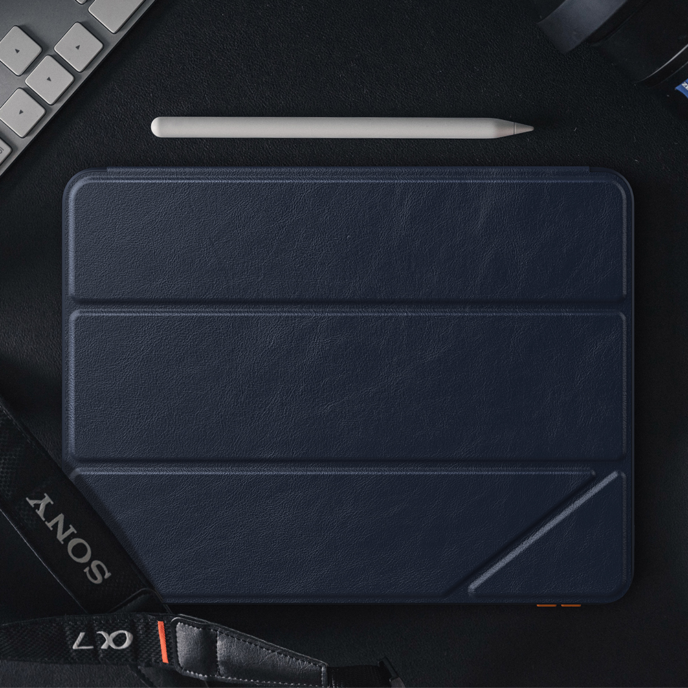 Противоударный кожаный чехол книжка синего цвета (Midnight Blue) с магнитной крышкой от Nillkin серии Bevel Leather Case для планшета iPad Pro 11, 2020 и 2021 год.
