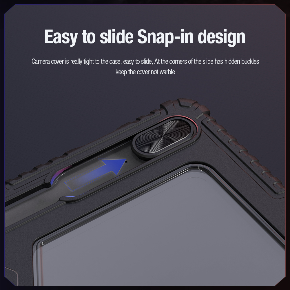 Противоударный чехол книжка синего цвета с магнитной крышкой и защитной шторкой для задней камеры от Nillkin серии Bumper Pro для планшета Samsung Galaxy Tab S9 FE+ Плюс.