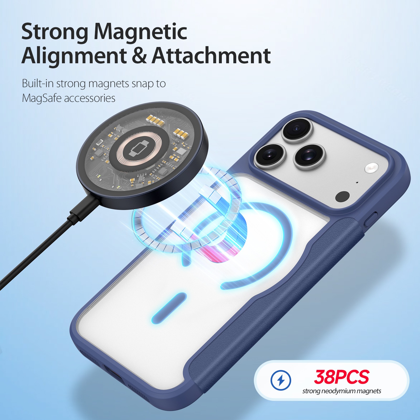 Чехол-книжка с MagSafe для iPhone 17 Pro совместим с зарядными устройствами MagSafe, кошельками, внешними аккумуляторами. Когда пришло время зарядить cмартфон, просто оставьте чехол на iPhone и прикрепите его к зарядному устройству MagSafe.