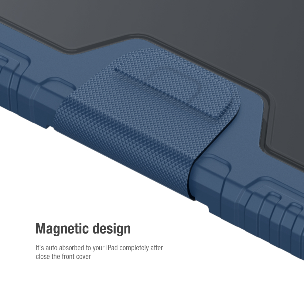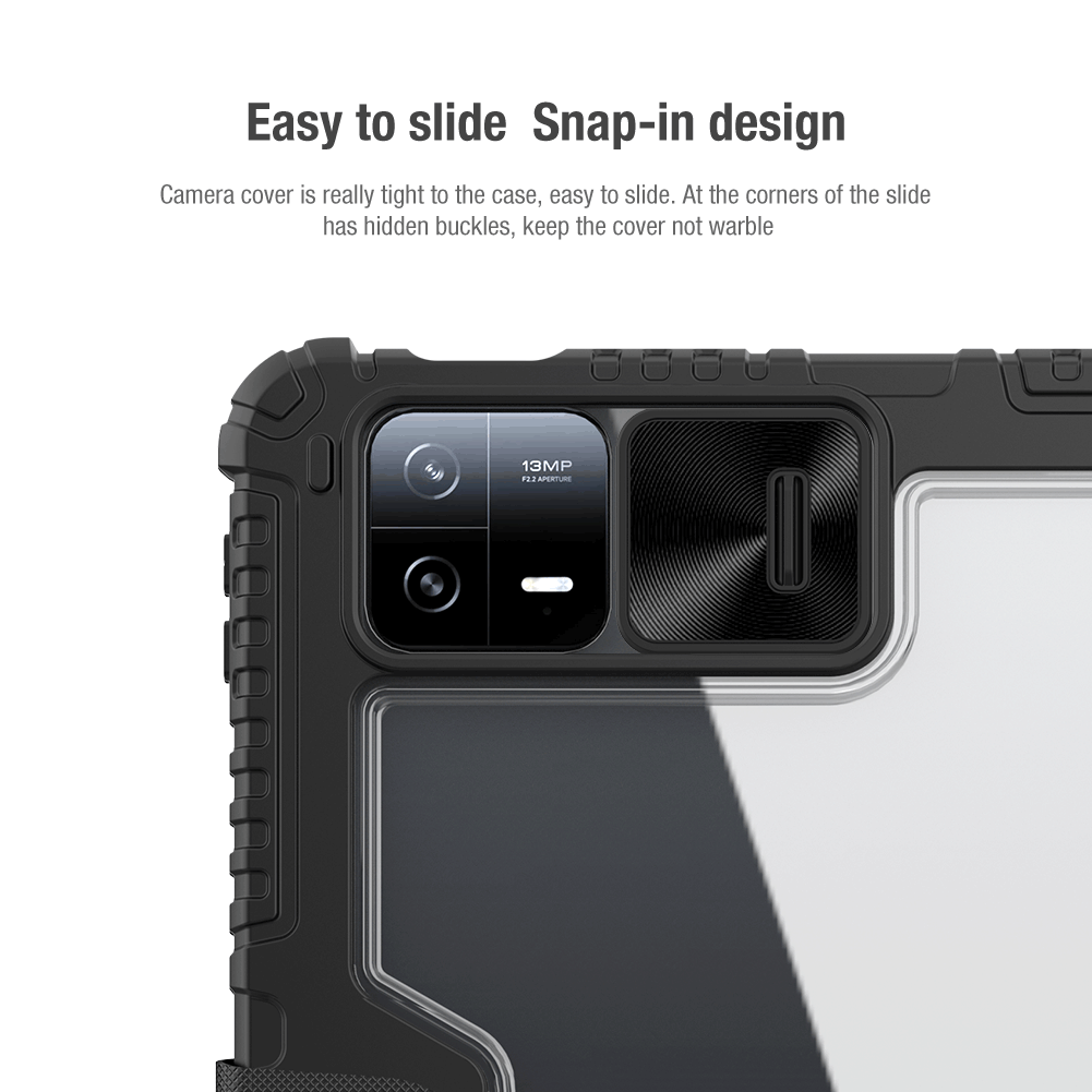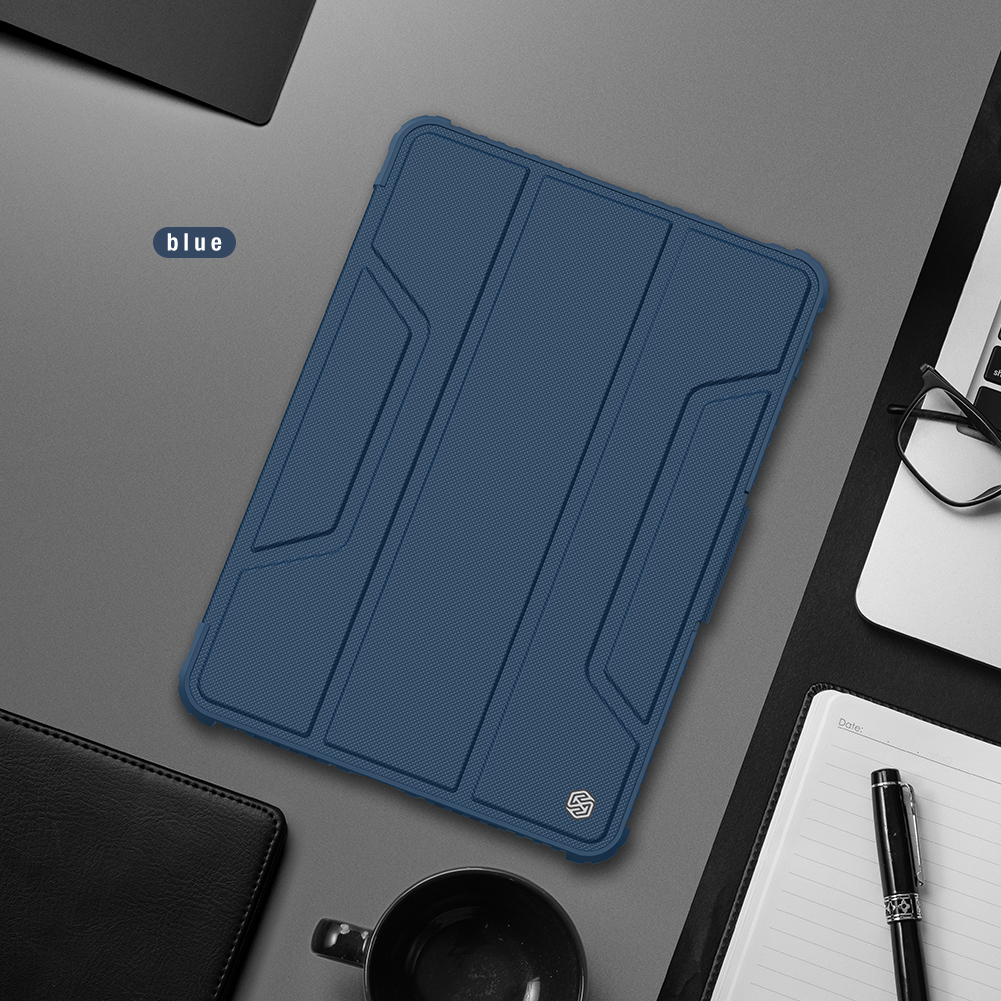 Противоударный чехол книжка синего цвета (Sapphire Blue) с магнитной крышкой и защитной шторкой для задней камеры от Nillkin серии Bumper Pro для планшета Xiaomi Pad 6 и Pad 6 Pro.