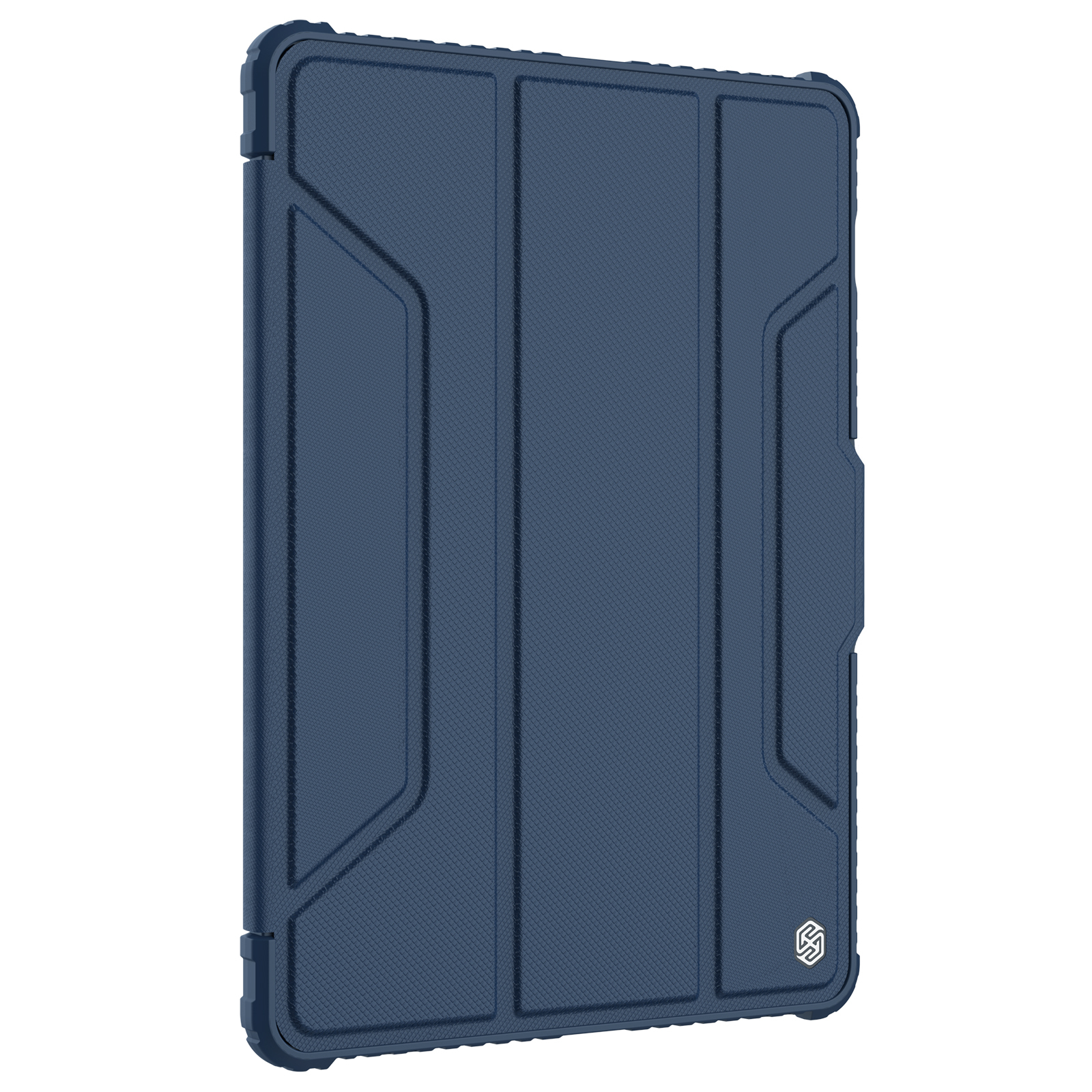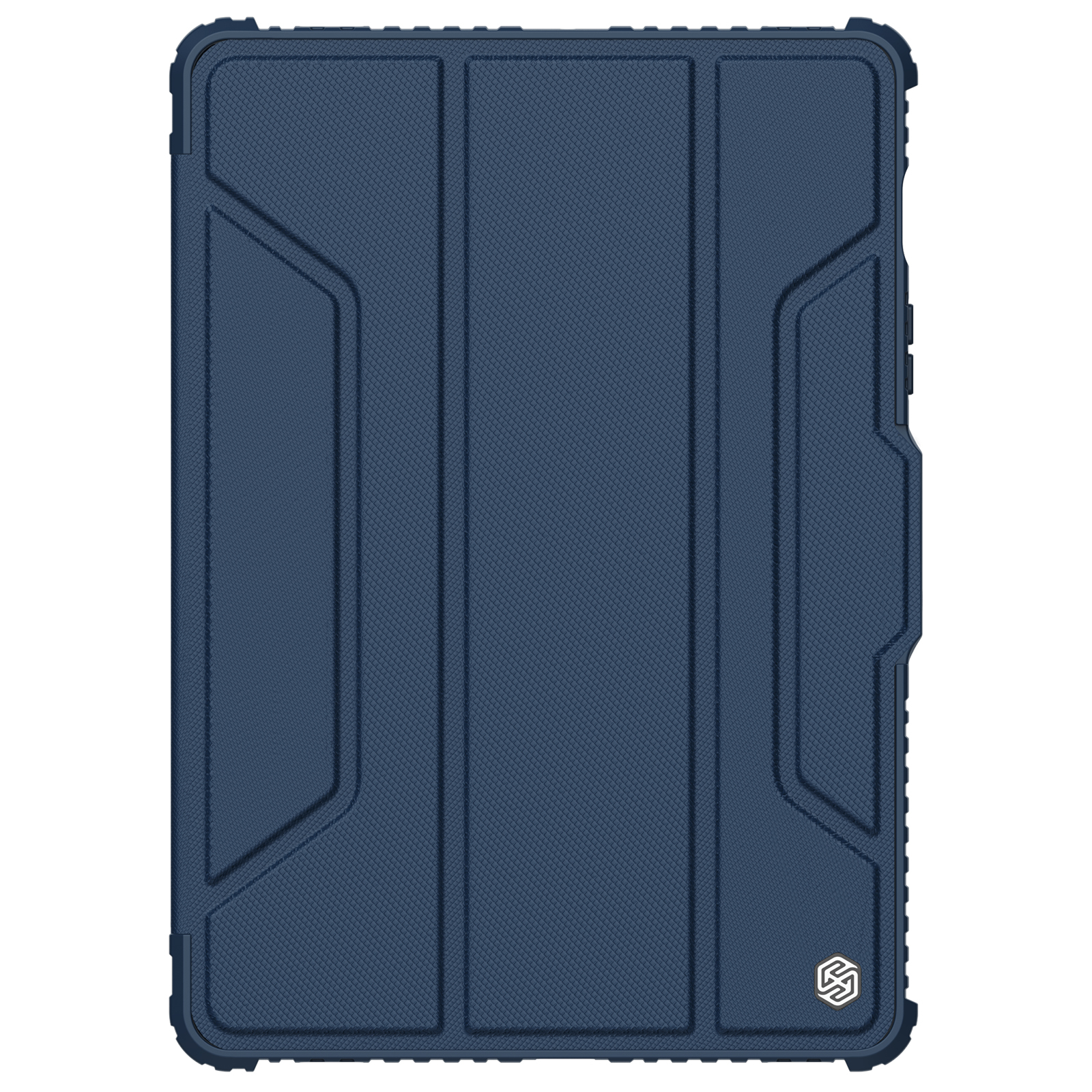 Противоударный чехол книжка синего цвета (Sapphire Blue) с магнитной крышкой и защитной шторкой для задней камеры от Nillkin серии Bumper Pro для планшета Samsung Galaxy Tab S8 и S8 5G.
