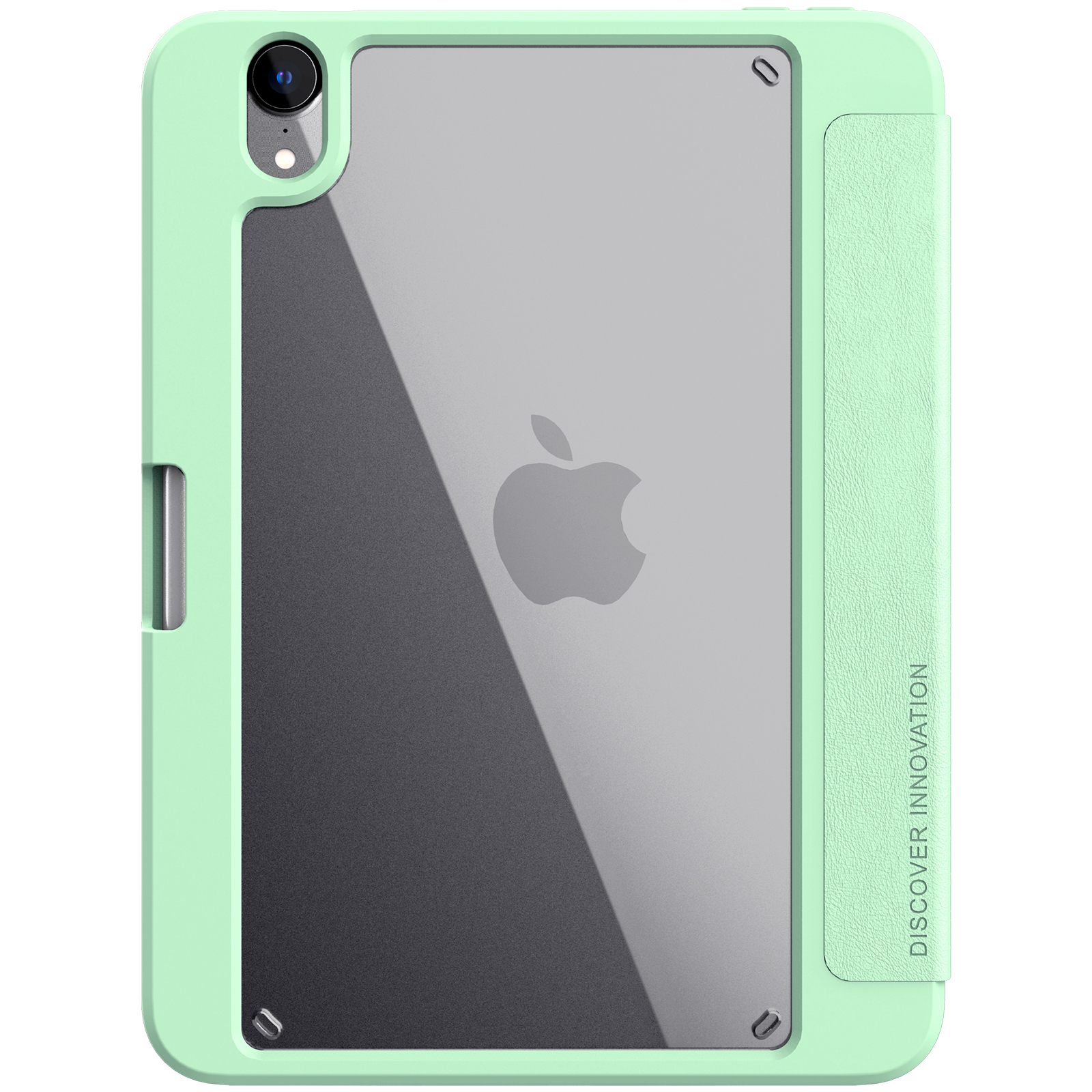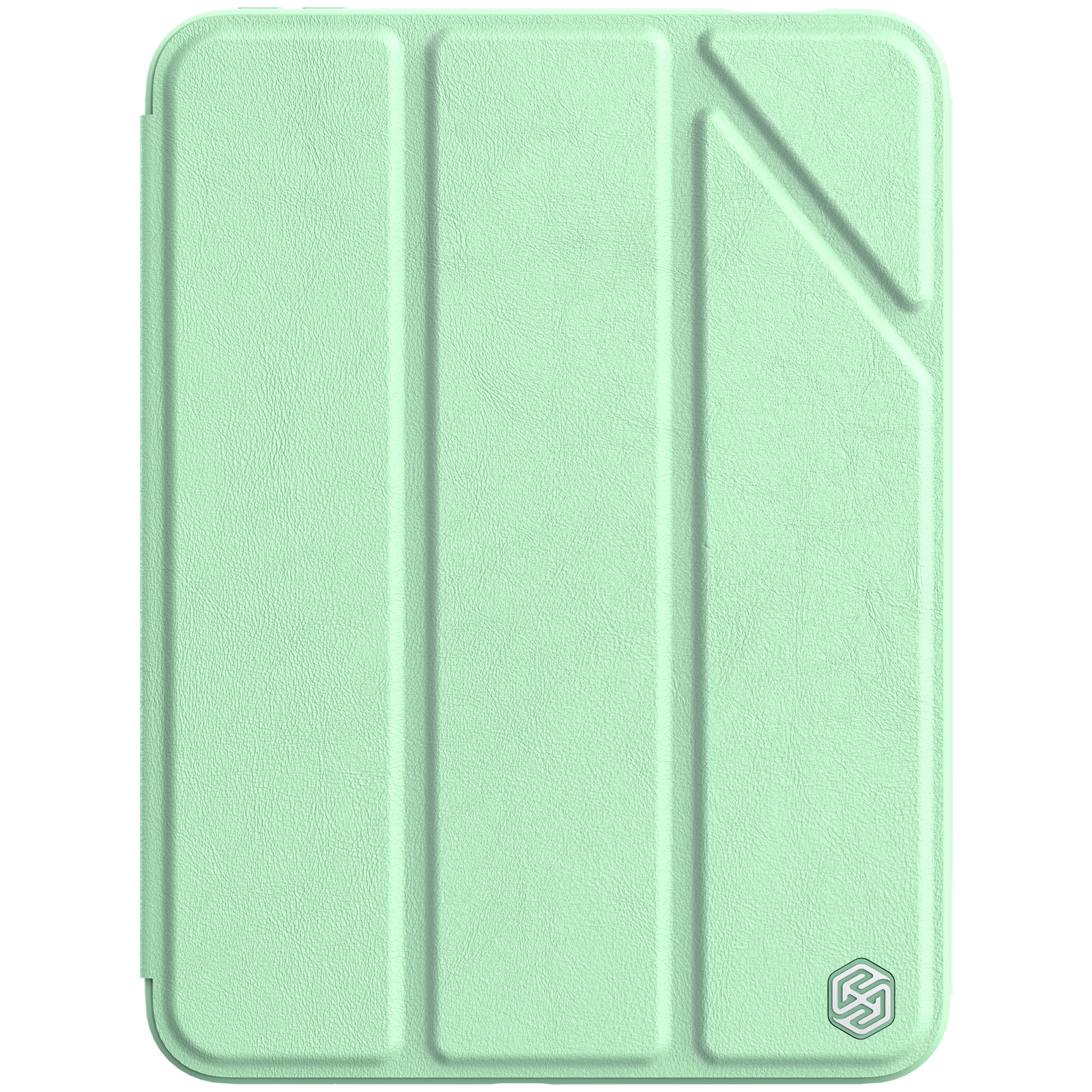 Противоударный кожаный чехол книжка зеленого цвета(Matcha Green) с магнитной крышкой от Nillkin серии Bevel Leather Case для планшета iPad Mini 6 и Mini 7.