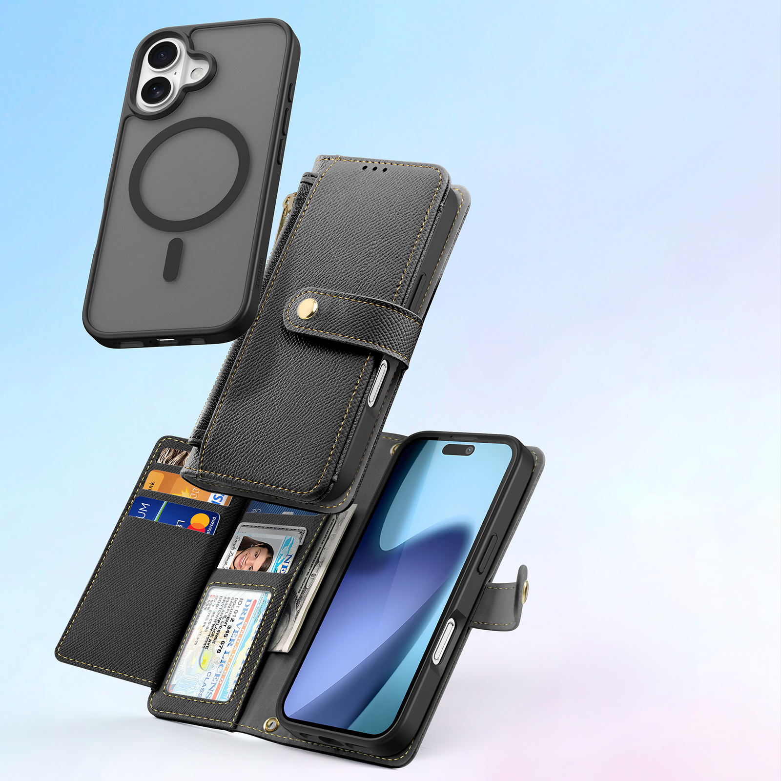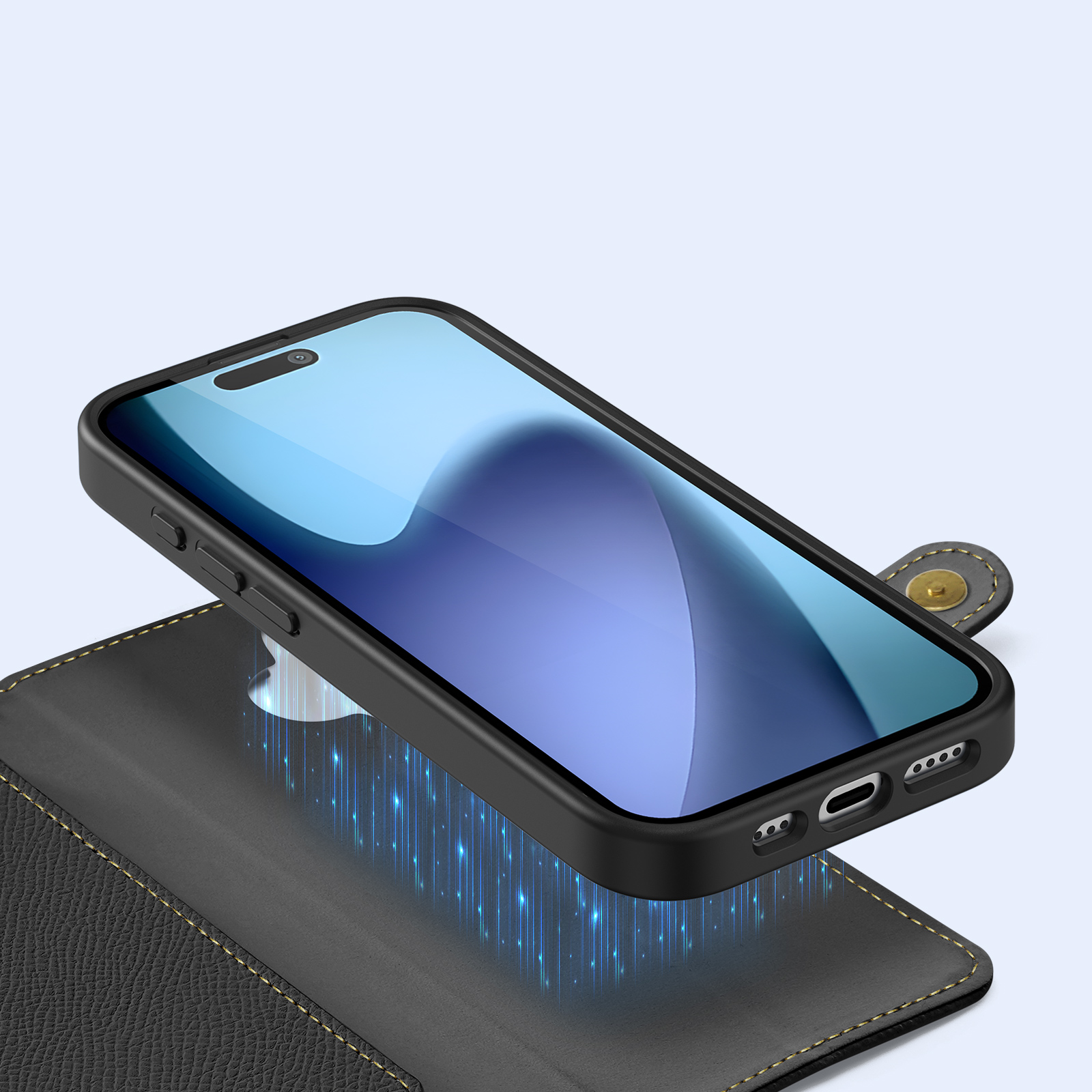 Чехол кошелек от Dux Ducis изготовлен из высококачественной синтетической PU кожи с встроенным чехлом с MagSafe для смартфона iPhone 17, серия Lawa Series Case